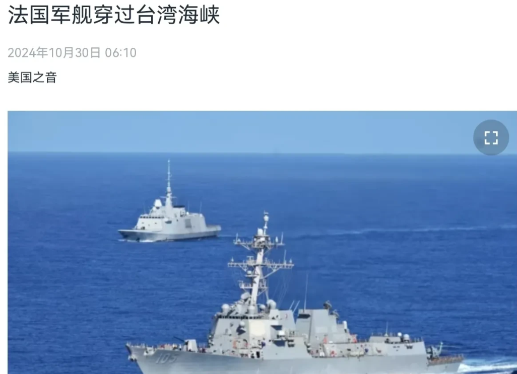 法国也来挑事了!日本军舰,新西兰军舰,德国军舰,加拿大军舰,美国军舰通过台湾海峡之后,法国军舰也来凑热闹了!10月30日,根据美国之音报道,美媒称,一艘法国海军军舰穿越了台湾海峡,这是西方国家在该战略水道上最新的一次行动。