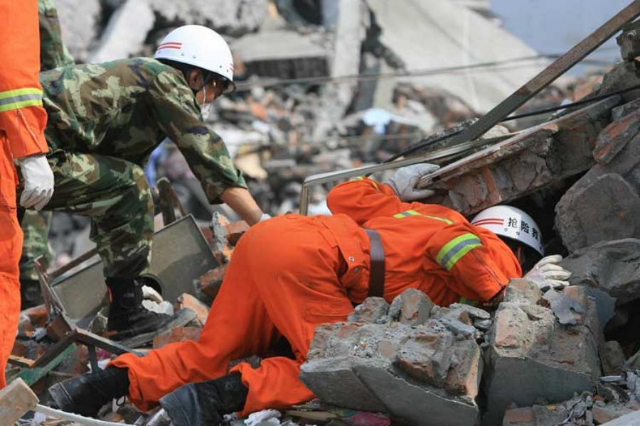 他二话不说,跟着战友们就开始救人。他们用手刨,用肩扛,顾不上手上被碎石划破的伤口,一点一点地把压在废墟底下的人挖出来。