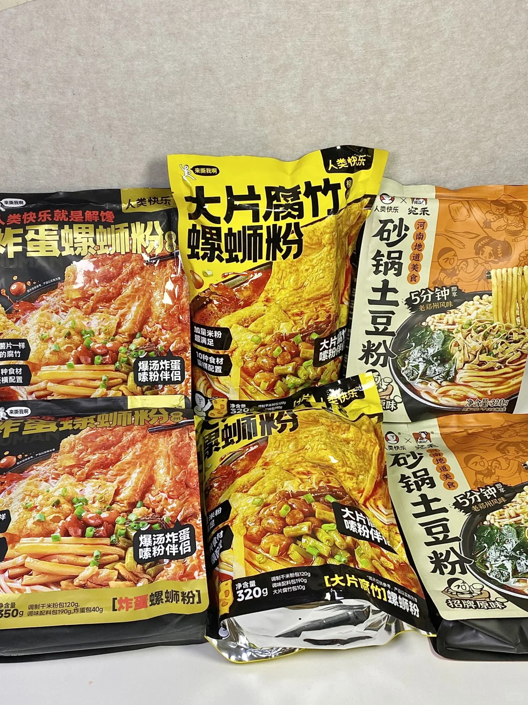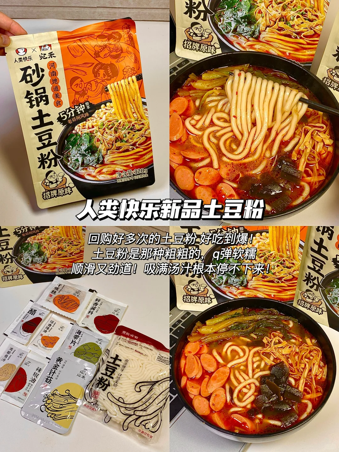 分享几个不停产 会一直回购的速食! 好吃不踩雷!可以先码住! 1️⃣人类快乐新品土豆粉 回购好多次的土豆粉好吃到爆! 土豆粉是那种粗粗的,q弹软糯~ 粉顺滑又劲道!吸满汤汁根本停不下来! 2️⃣ 人类快乐炸蛋螺蛳粉 自带炸蛋的螺蛳粉 谁不爱啊 吸满红油汤汁,真的巨巨好吃!自带八包小料,一口下去贼满足! 3️⃣ 人类快乐大片腐竹螺蛳粉 汤底香香辣辣的好浓郁,偏重口味的 料包很足!还有大大大片腐竹 吃起来好满足啊! 一口粉一口料,越嗦越上头!