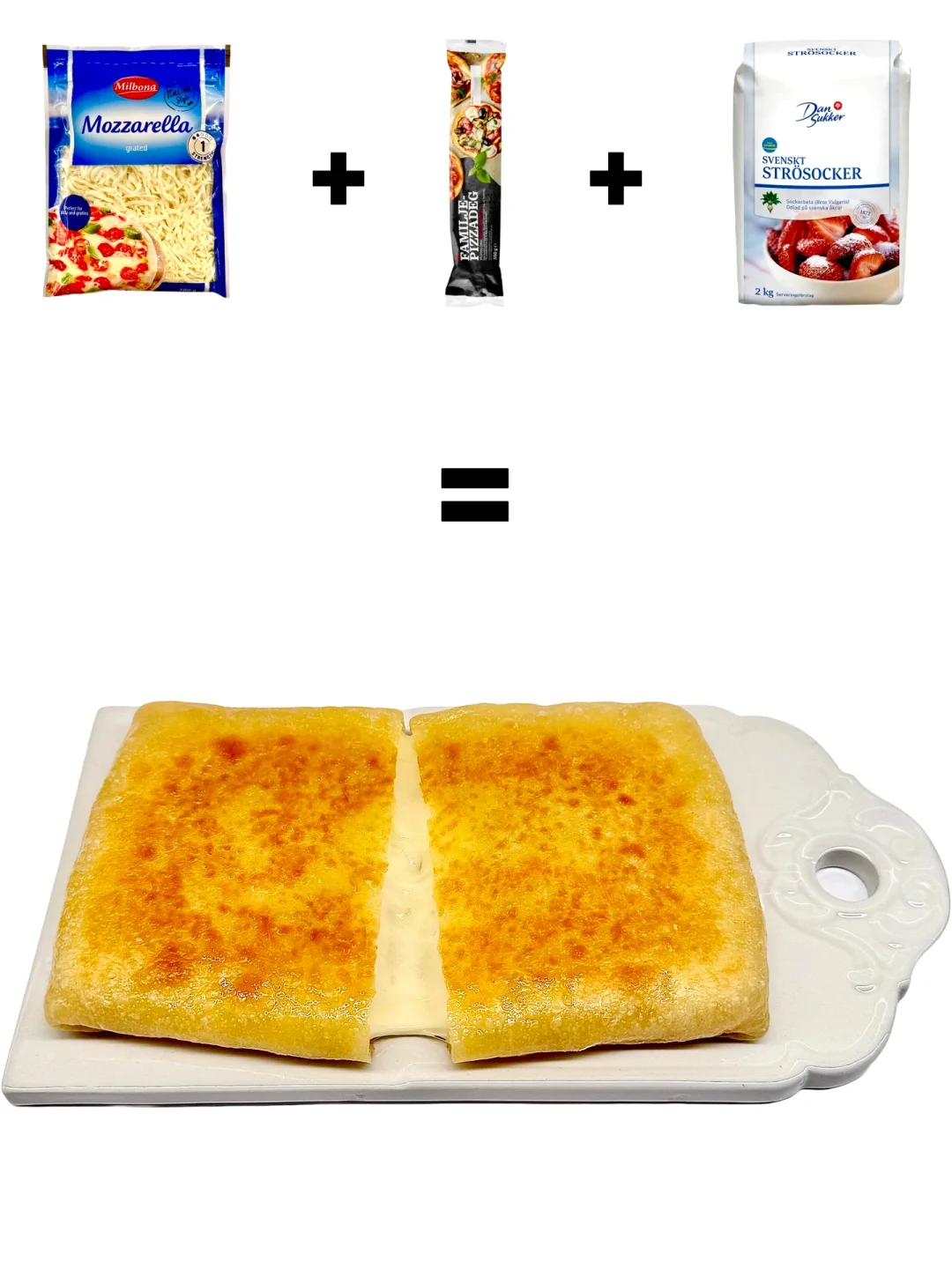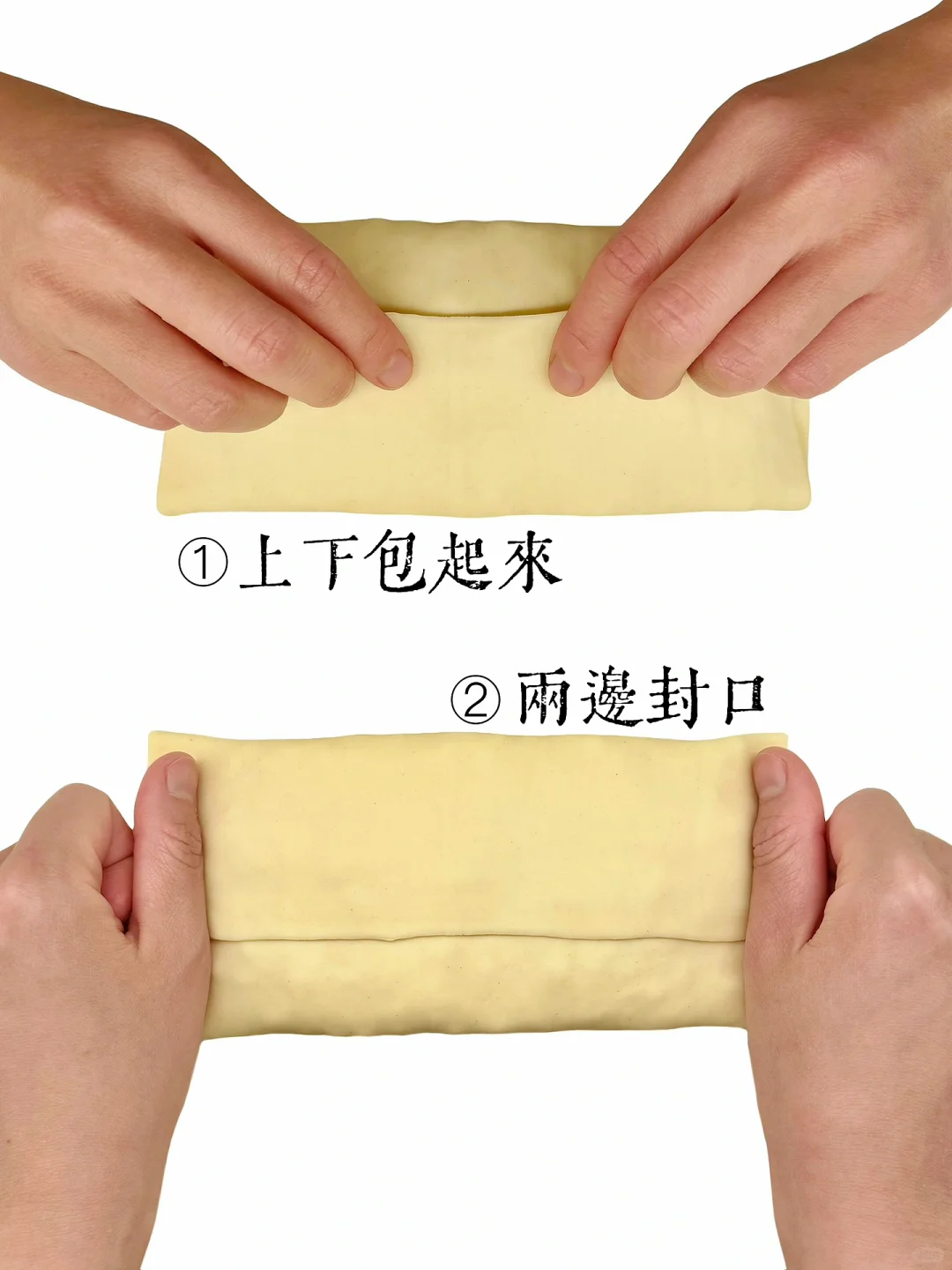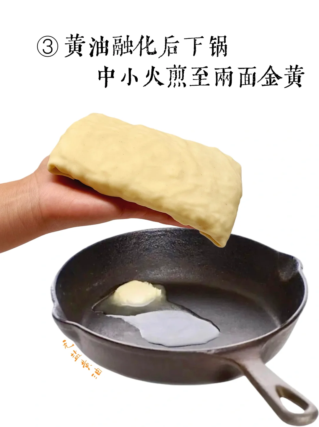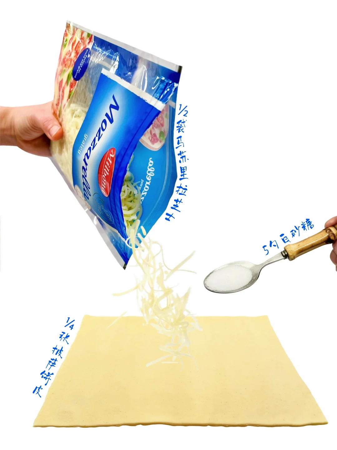 外酥里软的面皮包裹着厚厚的芝士 吃起来香香甜甜的 真的太好吃了啊!!!!!! 和国内蒙古餐厅卖的一样好吃[赞R] 👉Tips 披萨皮🉑擀得薄一点 口感会更酥脆 芝士和糖🉐多放些 吃起来才够香甜 图三步骤中🉑在披萨皮四周抹点水增加黏性 图三步骤封口时🉐封严实不然馅儿容易流出来