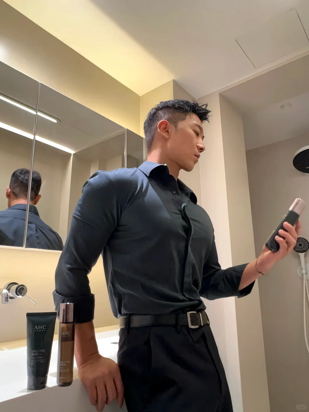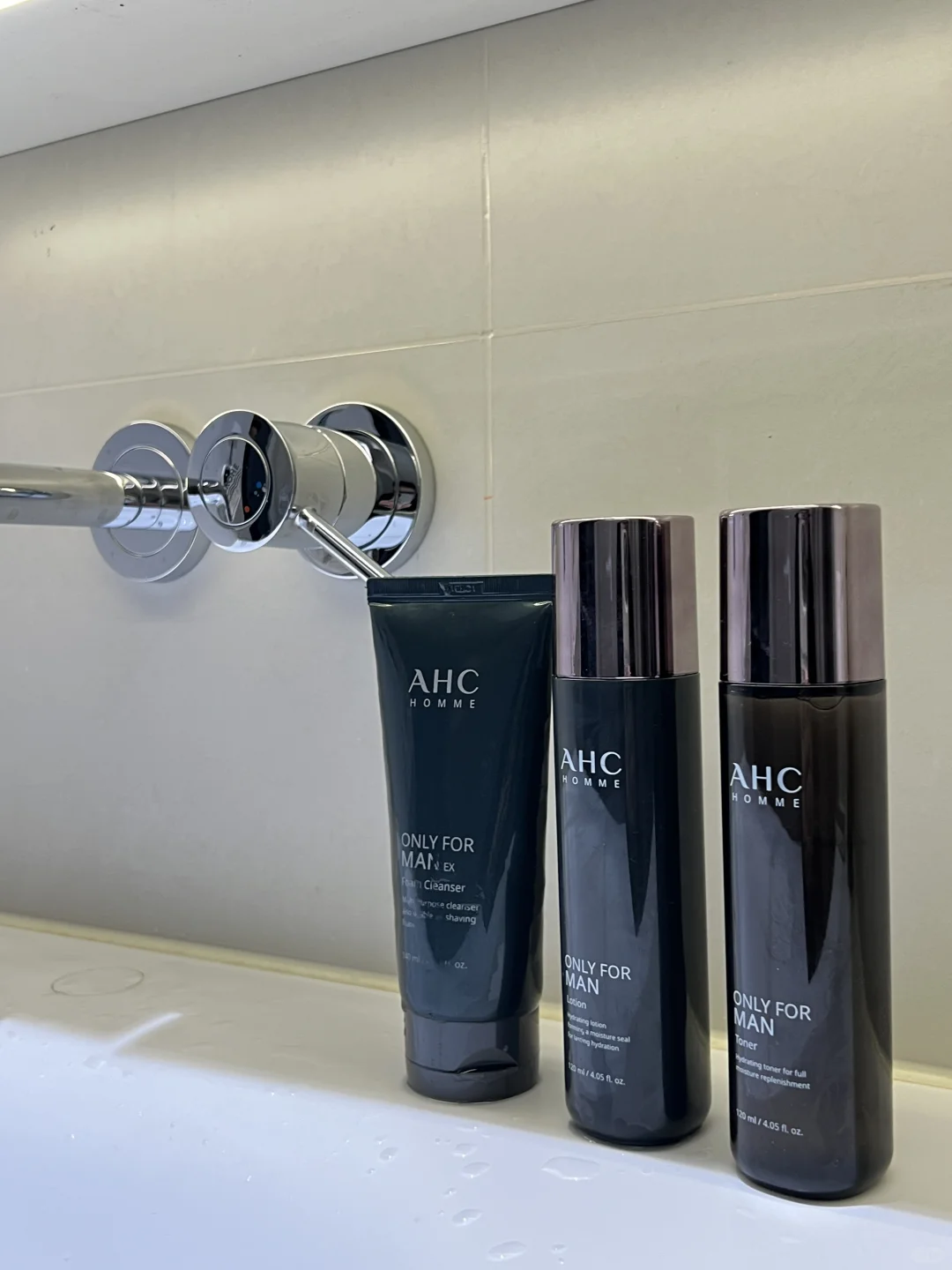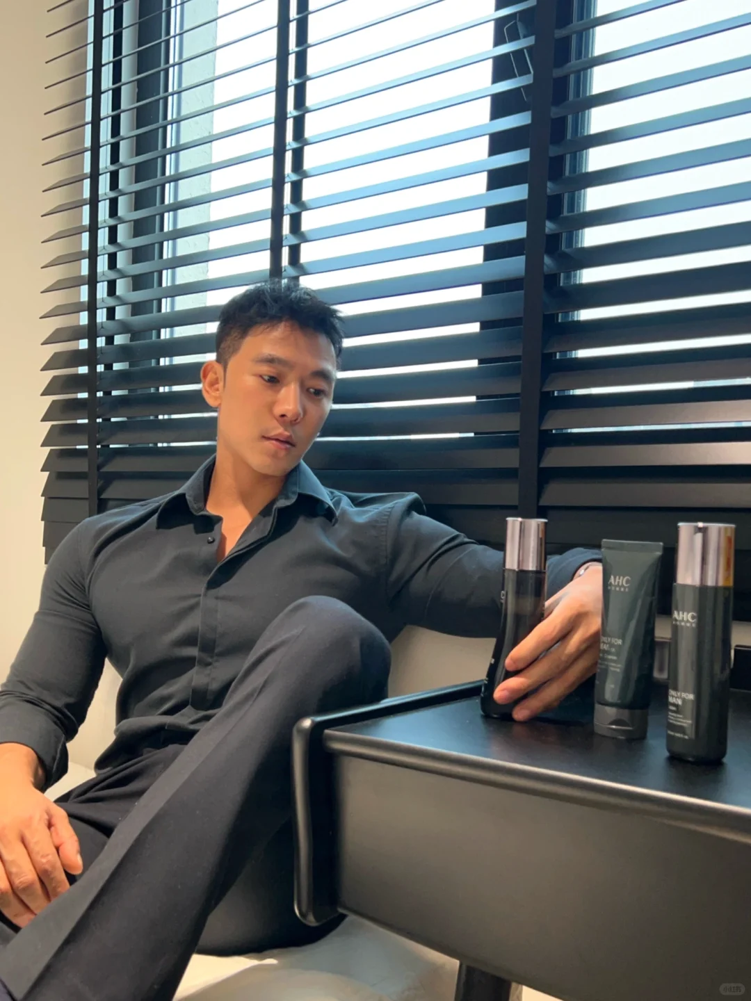 像我平时换季会用的就是这套AHC黑曜石男士套装,专为油敏皮设计的,一套满足男生日常护肤需求,简单三步搞定出门。