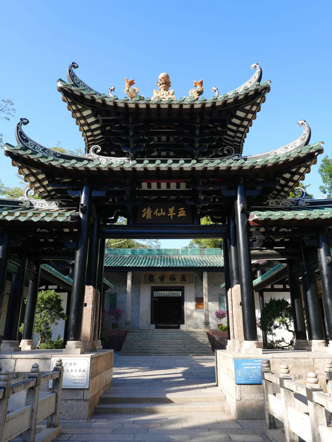 都知道广州别称“羊城”“穗城”,相传,有五位仙人骑着五仙羊降临广州,羊口里分别衘着五色稻穗并将稻穗赠予广州,仙人离去后,五只仙羊在越秀山化作了石头(今越秀山上立有五羊石像),而此观,也正是为了纪念他们。