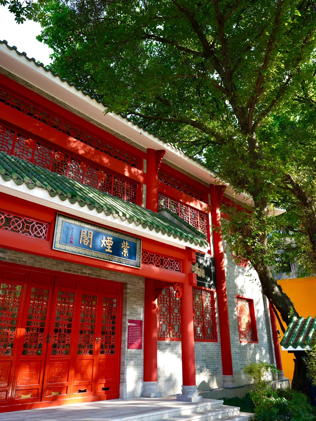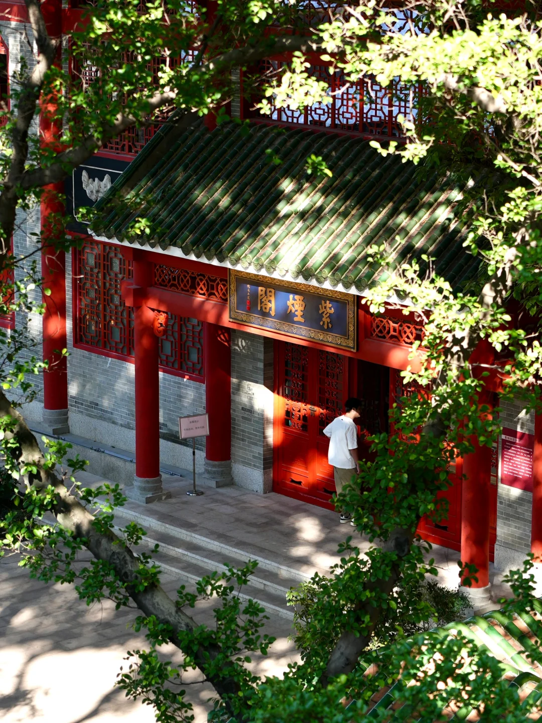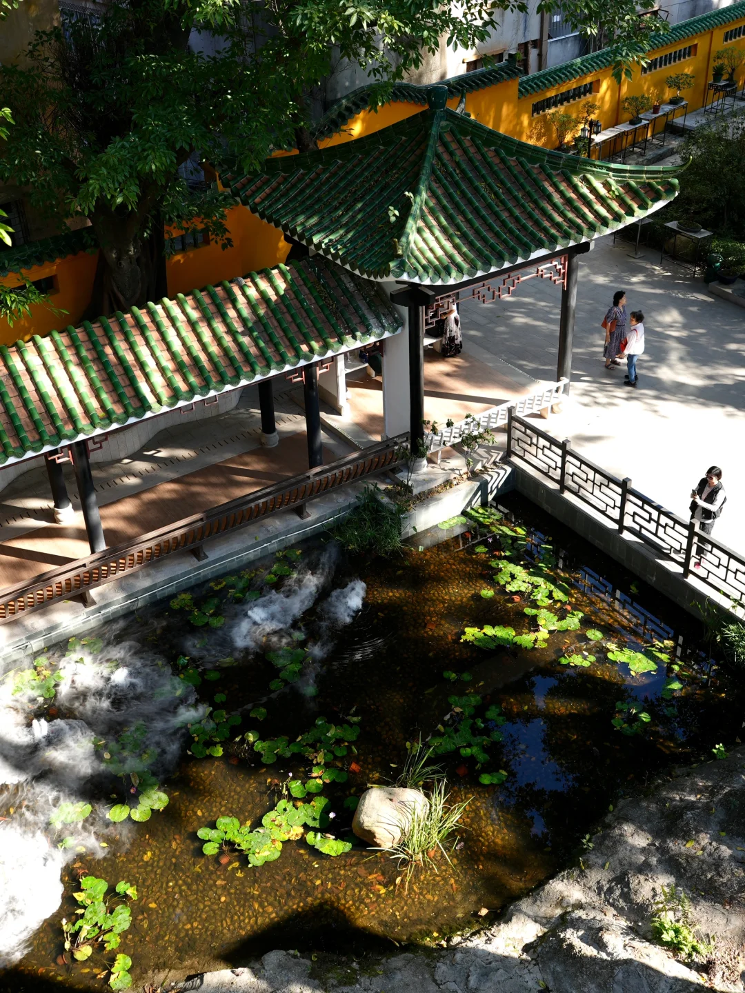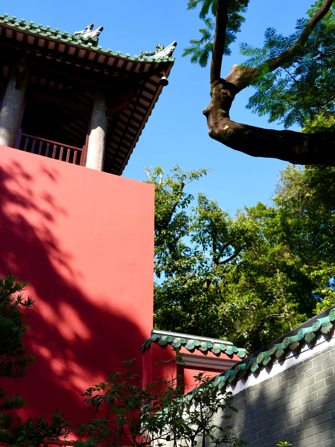 推荐下午3-4点钟,树影斑驳,光影打在红墙、黄墙建筑上,加上庭院、小池,拍照非常好看📸