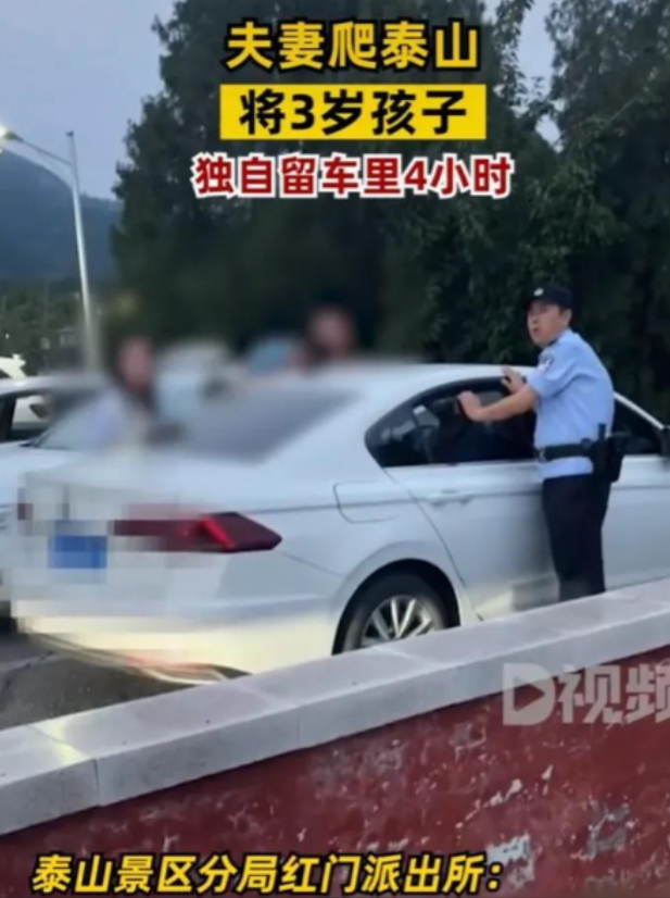 2023年,山东,一对小夫妻自驾游泰山,到了停车场后,觉得带孩子爬泰山太累人,便决定把3岁的儿子独自留在汽车内,为了防止孩子窒息,还特意打开车窗留了一条缝,后二人便上山游玩,孩子在车内独自待了4个小时。网友:“这对小夫妻能培训后再上岗吗?”