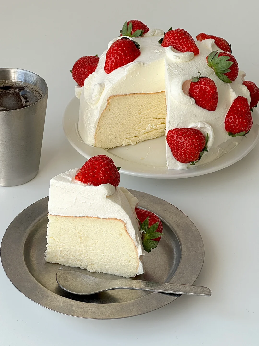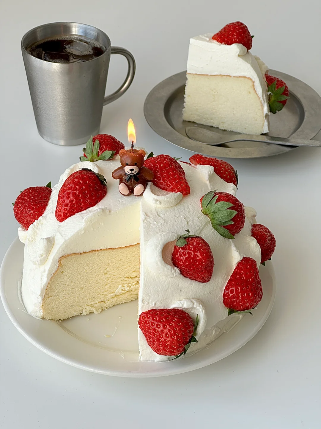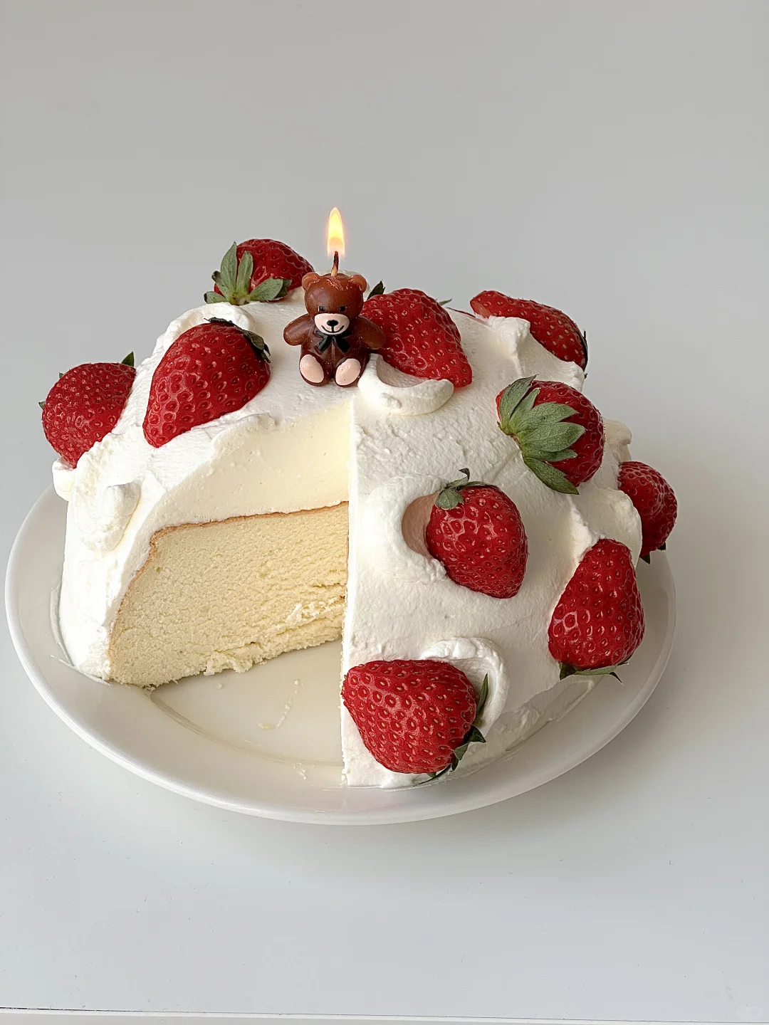 ⑥ 淡奶油➕细砂糖打发抹面,用草莓装饰即可