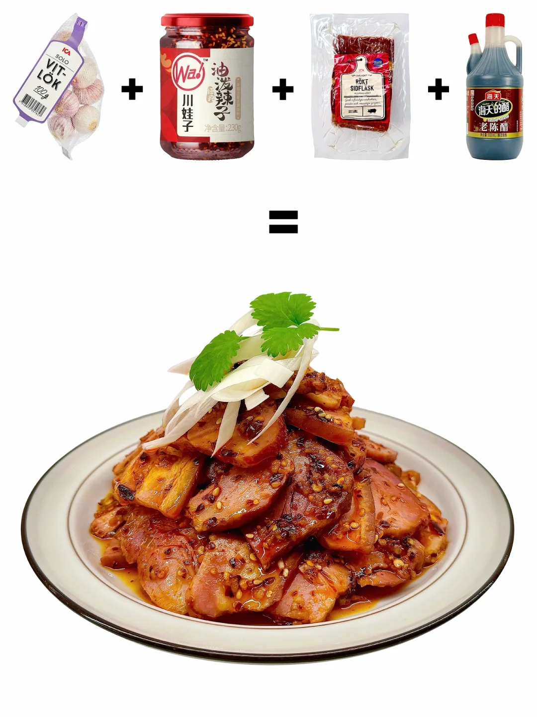 蒜香够冲 辣油够香 搭配醋的酸味 味道层次拉满! 熏肉的肉质嫩滑又有嚼劲 调料渗透得恰到好处 吃起来特别过瘾[赞R] 越嚼越下饭! 👉Tips 调味🉑按个人口味调整 油泼辣子的油和蒜泥🉐多放才香 拌匀后🉑放微波炉叮一下 吃起来更香 🉑按个人喜好加入香菜/洋葱/黄瓜一起拌匀 🧭指南 熏肉购于ICA Kvantum