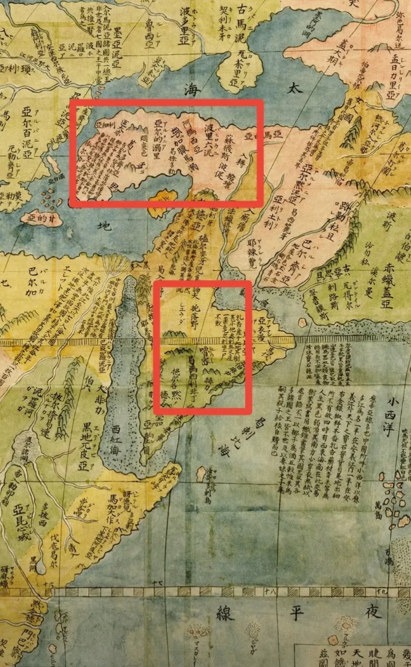 现在的坤图是经过西方传教士和满清篡改的,很多地名已经找不到了,但还是能找到蛛丝马迹。大明有多大,王畿之地是整个亚洲包括东欧一部分,域外之地是整个地球。