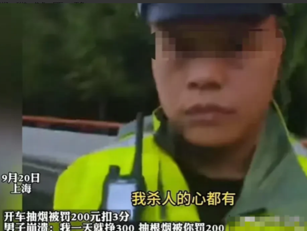上海,男子开车时抽烟被交警拦下,交警上来就顶格处罚。男子瞬间崩溃暴怒:我杀 人的心都有,一天就赚300块钱,我抽一根烟被你罚200块钱,还罚3分,我还是个大学本科生,来做贡献,你说缺德吗?交警冷冷回复:不缺德,依法执行。男子更加生气,拍下视频发布到网上,让网友评理。 李磊开着他的老款小轿车,沿着繁忙的市区街道慢慢驶过,他顺手从车内储物箱中取出一根香烟点上,一边抽烟一边驾驶,仿佛一切再自然不过。 也许是习惯,也许是觉得驾驶时有烟陪伴,才能让他稍稍放松,进入某种“惬意”的状态。 正当他沉浸在自己的世界中,忽然,他的车被一辆警用摩托车挡住了。车窗被轻轻敲了敲,李磊抬眼一看,是交警。 他心里不禁一紧,以为可能超速了,结果交警只是指着他手中的香烟,说道:“根据《道路交通管理条例》第26条规定,驾驶时吸烟是违法的,存在一定的安全隐患。我们依法对您进行处罚。” 200元罚款,3分扣除,这一切来得如此直接,没有丝毫商量余地。 李磊愣了一下,心中立刻升起一股不满,他忍不住喊道:“这也算违法?我这不就是抽根烟而已,能把我车开得飞起来吗?”他试图用这种情绪发泄来反抗,却发现交警依旧冷静,像是事不关己一般,坚定地表示:“依法执行。” 李磊心中的怒火顿时升腾起来,他下意识地掏出手机,快速录下了眼前的一切,并且开始在视频中大声疾呼:“我杀人的心都有,你们就这么想让我穷死吗?” 而看着交警依旧不为所动的模样,他的愤怒越发失控。 网友们的反应比李磊想象的还要激烈,评论如潮水般涌来。