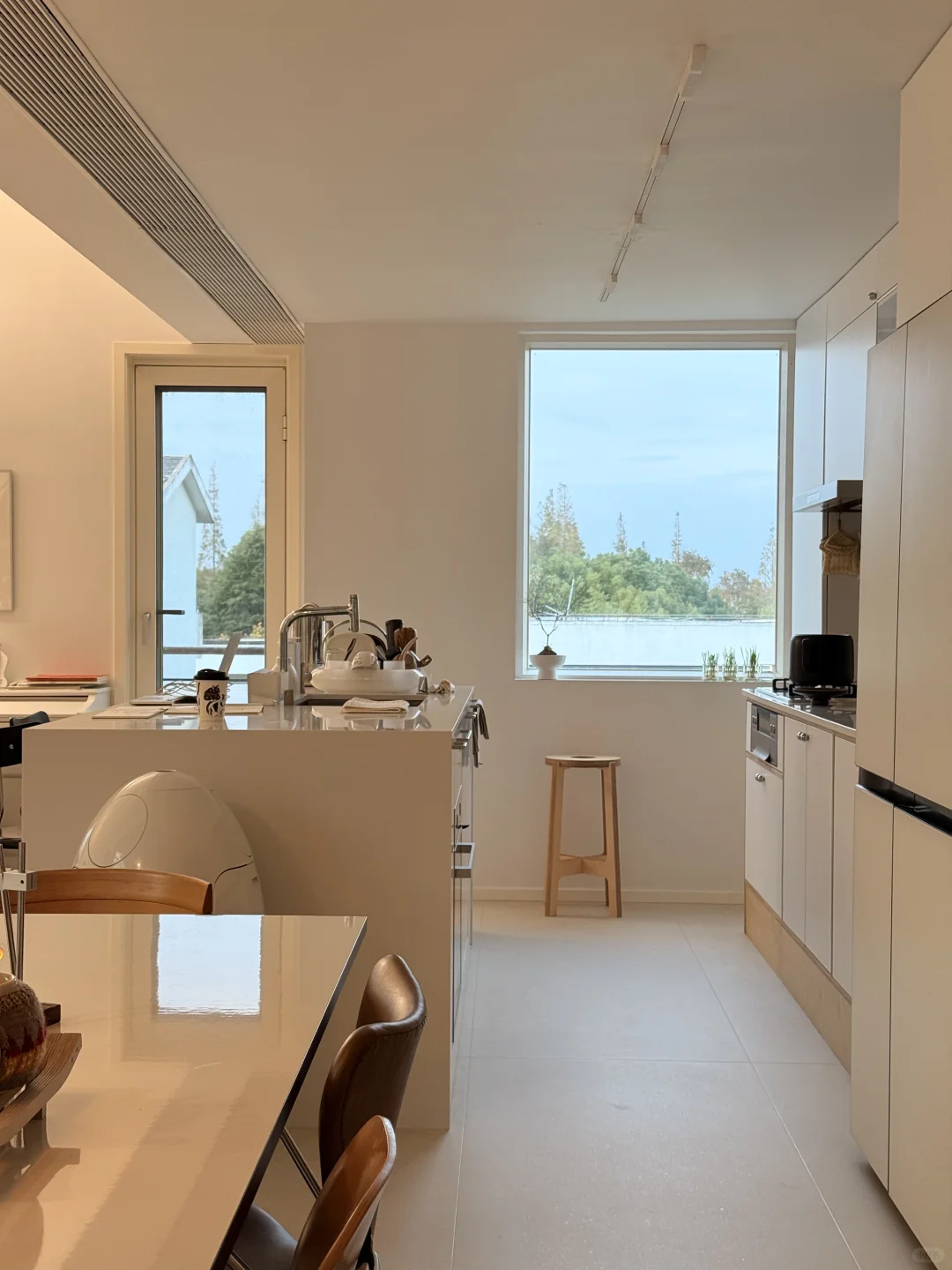 打开橘黄色的灯光之后,窗外的阴天变得蓝绿起来