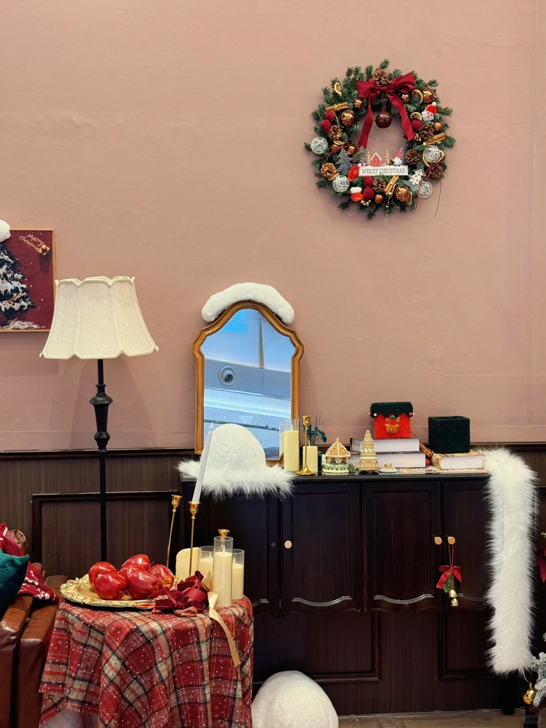 室内有三处🉑拍,长条沙发🛋️,壁炉单人沙发,装饰立柜