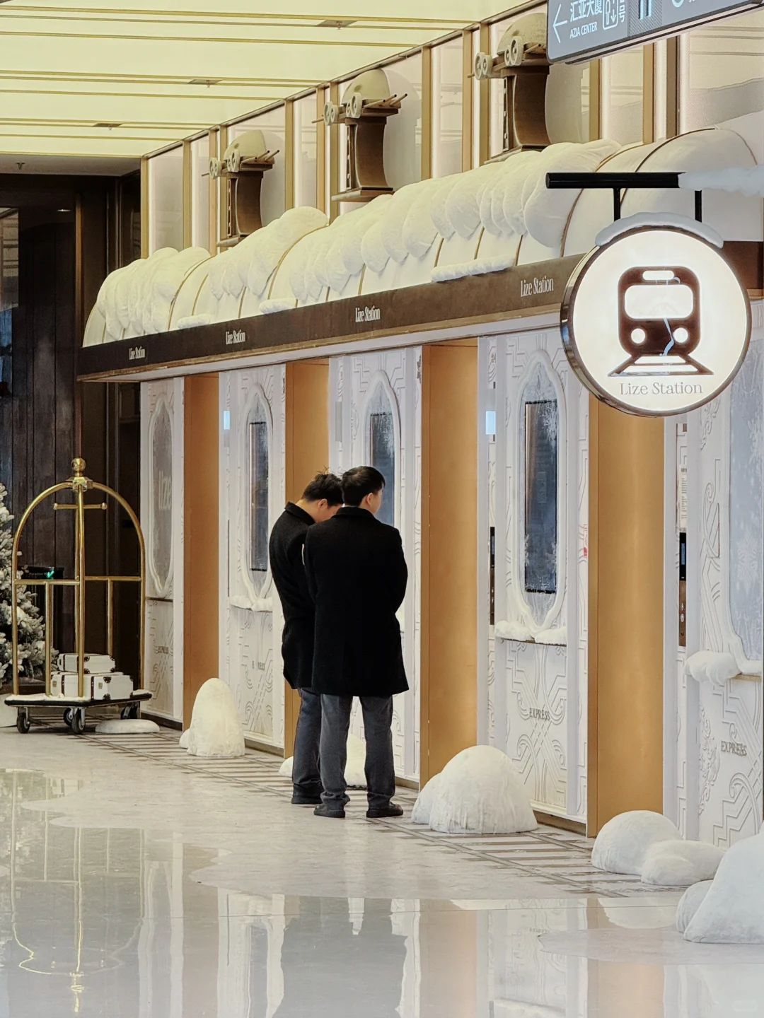 电梯间改成了雪国列车站,位置就在雪屋旁边,很近🚄
