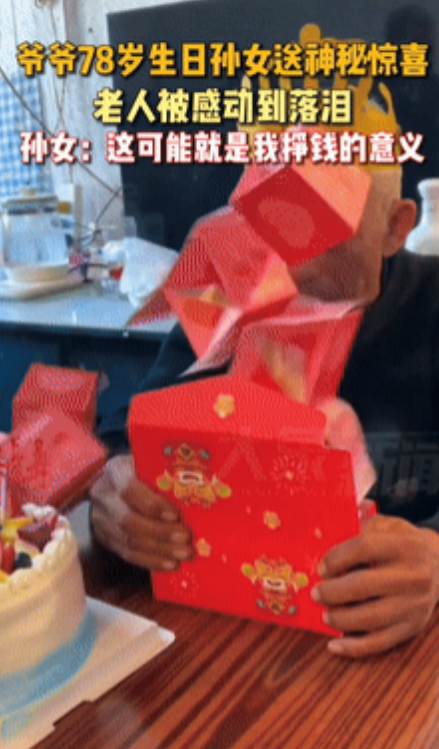 12月2日山西,爷爷过78岁生日,孙女送他一个红色的盒子!不料,爷爷打开一看,居然瞬间被感动到哽咽落泪!孙女说:“这可能就是我挣钱的意义!”网友:爷爷笑着笑着就哭了,我也跟着哭了...... 据了解,赵女士从小由爷爷奶奶抚养长大。 在她年幼时,家庭经济条件有限,无法为爷爷奶奶做些什么来报答他们的养育之恩。 但是随着年龄增长,赵女士更加珍惜与老人相处的时光,也更懂得感恩。 12月2日是赵女士爷爷78岁的生日。这天,赵女士准备了一个红色礼盒作为生日礼物。当爷爷打开礼盒时,里面装满的百元大钞飞涌而出。 爷爷的反应从最初的好奇,到惊喜,最后流下了眼泪。这一幕通过视频传播到了网络上,引起了广泛关注。 对于赵女士来说,这份礼物不仅是金钱的价值,更是对爷爷多年付出的一种感谢和认可。 它代表了赵女士的工作成果,也展现了她挣钱的意义。 赵女士表示,每年她都会为爷爷准备特殊的礼物,希望能够让老人感受到自己的心意。 这件事在网上引发了讨论。许多网友对赵女士和爷爷之间的关系表示羡慕。 有些网友回忆起了自己已经离世的亲人,表示遗憾未能好好陪伴他们。还有一些网友分享了自己的童年经历,坦言因为种种原因,与长辈之间的关系并不和谐。 在当前社会中,人们常常忽视了身边最亲近的人。赵女士和爷爷的故事引发了人们对如何表达爱意的思考。无论是通过准备礼物,还是日常生活中的照顾,人们都应该让长辈们感受到被重视。 这个事件也引发了对中华民族传统美德的讨论。 许多人认为,尊老爱幼是中华文化的重要组成部分,应该在现代社会中得到继承和发扬。同时,也有人指出,表达感恩不应局限于物质层面,更重要的是在日常生活中的关心和陪伴。 此外,这个事件还引发了对代际关系的讨论。有人认为,随着社会的发展,年轻人和老年人之间的代沟越来越大,如何促进代际交流和理解成为一个重要话题。 也有人指出,在现代家庭结构中,祖辈对孙辈的抚养越来越普遍,这种关系如何影响家庭结构和社会结构值得深入研究。 (信息来源:大象新闻)