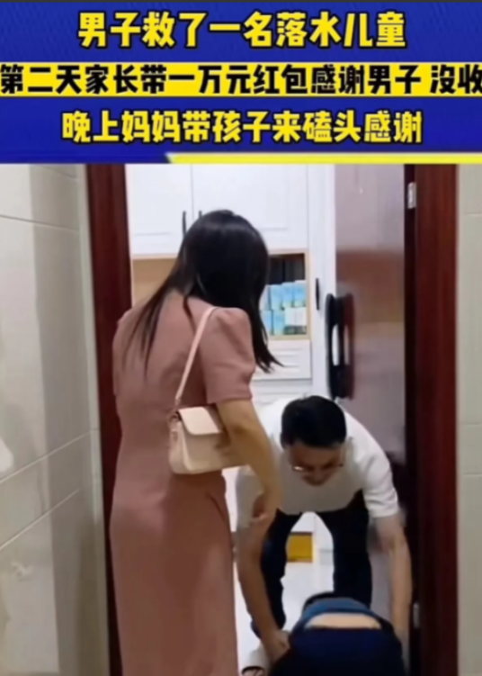 (参考信息来源:贵溪发布——男子救了一名落水儿童,第二天家长带1万红包感谢 男子却没收,晚上妈妈带着孩子来磕头感谢)