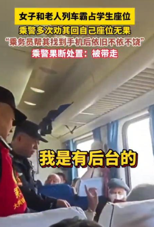 面对乘警的劝导,女子和老人置若罔闻。有些老人甚至会拿自己的身份来说事,试图用地位压别人。然而,在法律面前,人人平等,“后台”并不能成为逃避责任的挡箭牌。