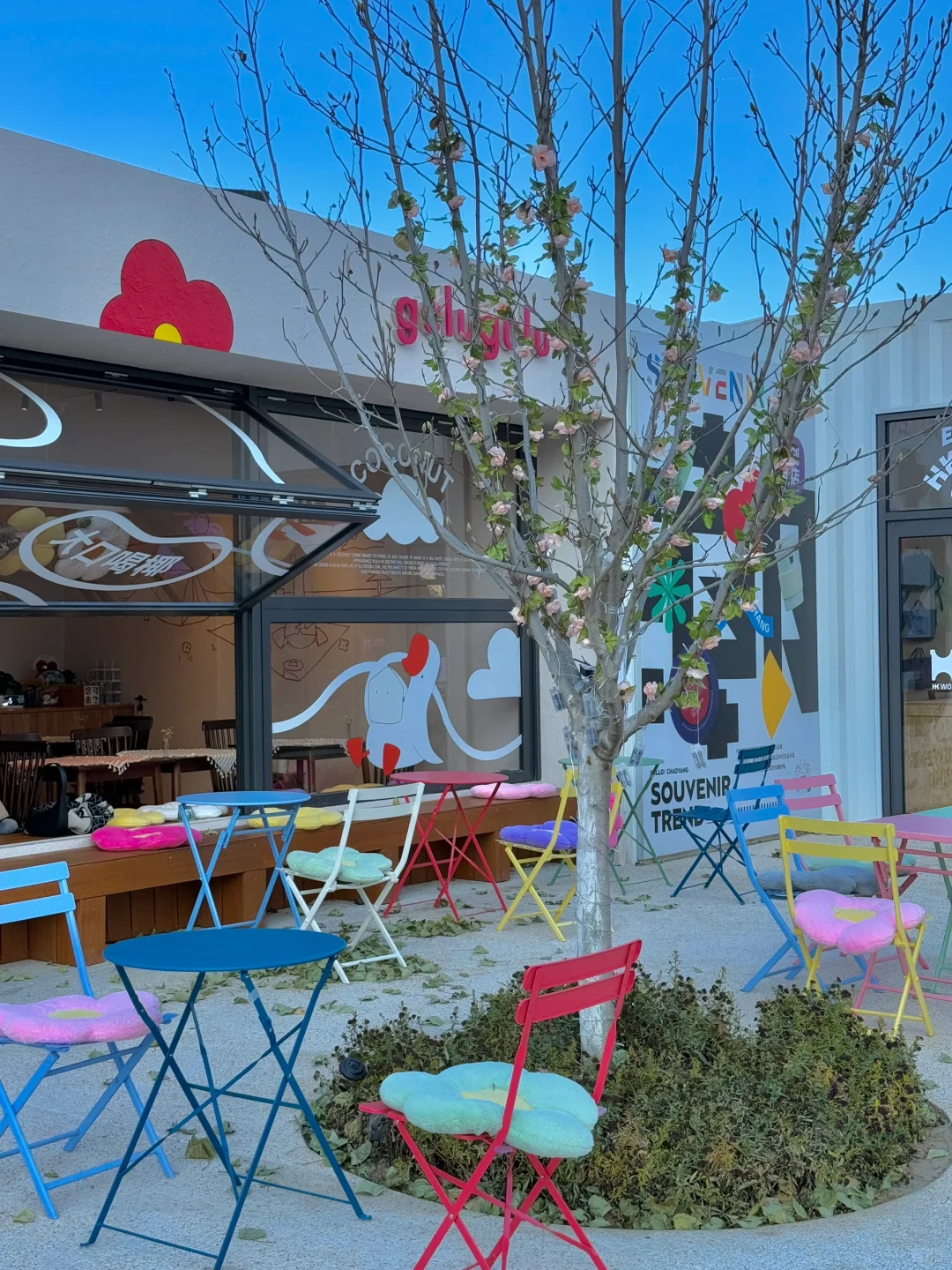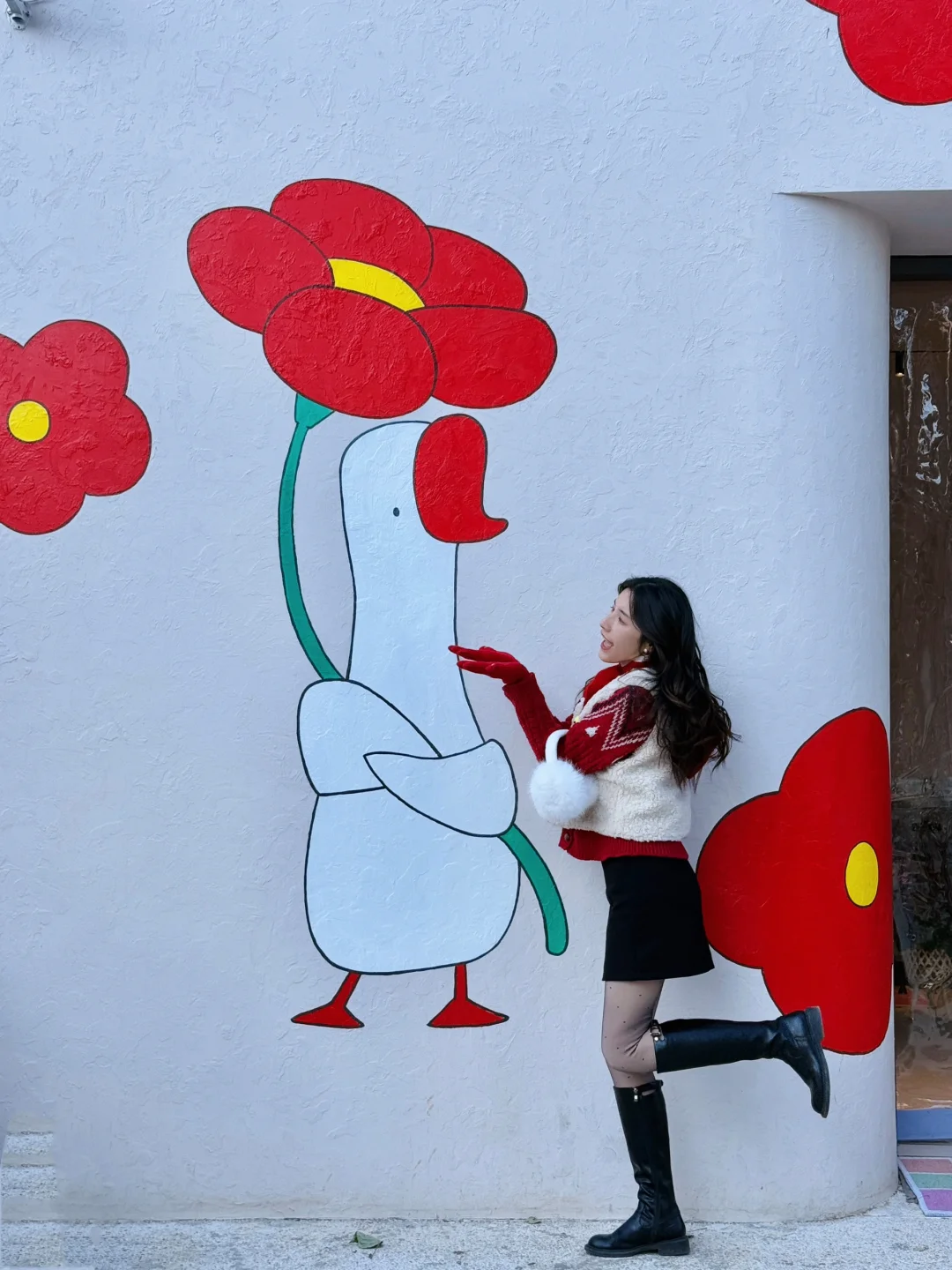 这里好韩啊,有一家花店旁边有颗🌲,旁边的大鹅🦢也超好拍
