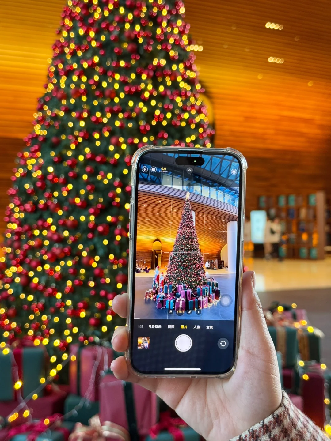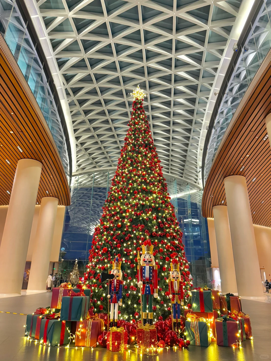 很有大剧院装修的大厅🈶一棵巨型圣诞树,白天还可以在室内拍到中国尊