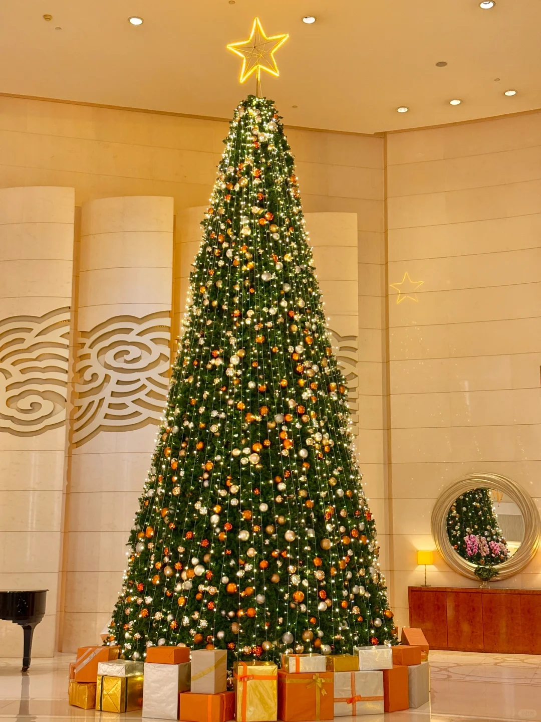 一层酒店大厅🈶一棵两层楼高的圣诞树🎄,还发现了社恐人士机位,到圣诞树得背面可以躲开来往人群