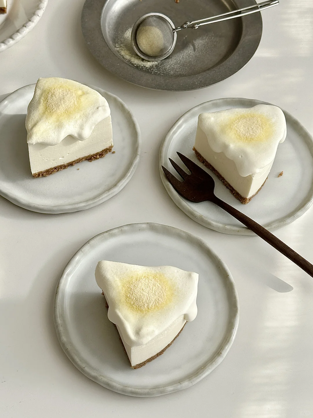❻蛋糕脱模后切块,再打发一点奶油淋上上面,筛点黄豆粉即可