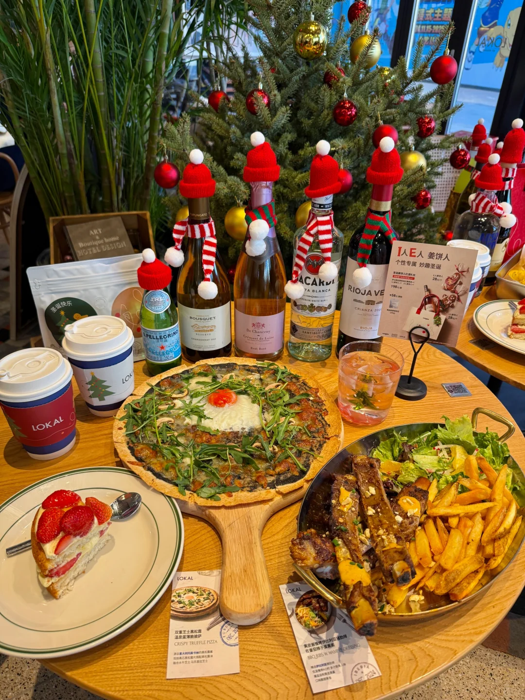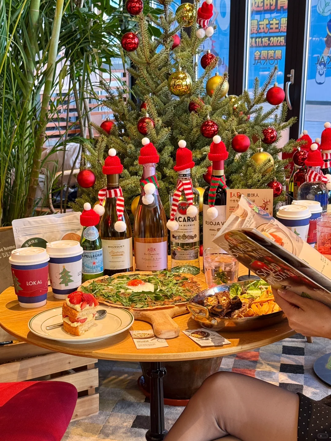 在大悦城吃到了圣诞限定漂亮餐 打卡JJ、赵露丝同款🥙 不愧是Wagas旗下的高端西餐厅 很多明星都会光顾💕 最近又上了圣诞限定餐🍴 细节到酒杯里面都有棵圣诞树🎄呢‼ 超圣诞氛围了呢🎅 连餐厅的洋酒都带上了圣诞帽🎩 一整个圣诞氛围拉满了‼ 喝完杯子还能带走,太喜欢了🥂 这次圣诞套餐里的「浆果烟熏风味烤脆皮仔鸡」 还有「双重芝士黑松露温泉蛋薄脆披萨」🍕 可以吃到全球各地的美食 😋味道都超赞💕 不愧是明星经常打卡的店 👏