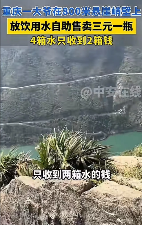信息来源:(椒点视频——《2024年11月12日大叔背水到800米高悬崖,自助卖水3元1瓶被白嫖:本想给人救急》)