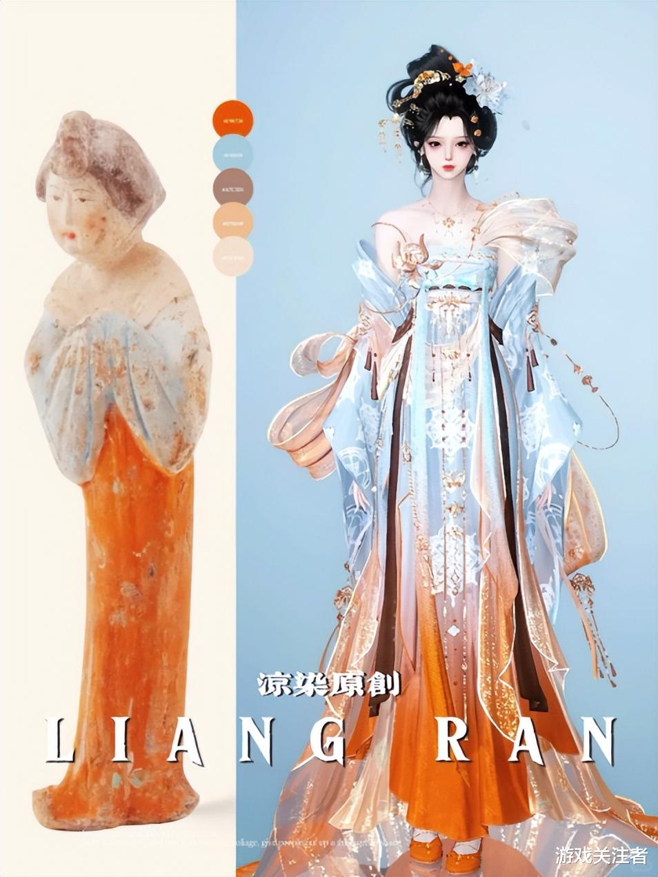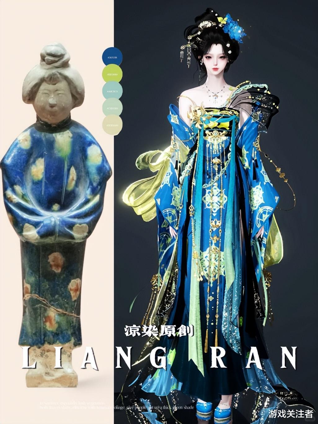 换装是《逆水寒》手游的一大玩法,衣柜丰富程度不亚于《奇迹暖暖》,很多时装都可以染色。早在之前就刮过一阵“文物染色”的风,玩家根据一些出土文物的配色,按照其撞色思路、色块比例等特点,给各种汉服时装染出“古味”。