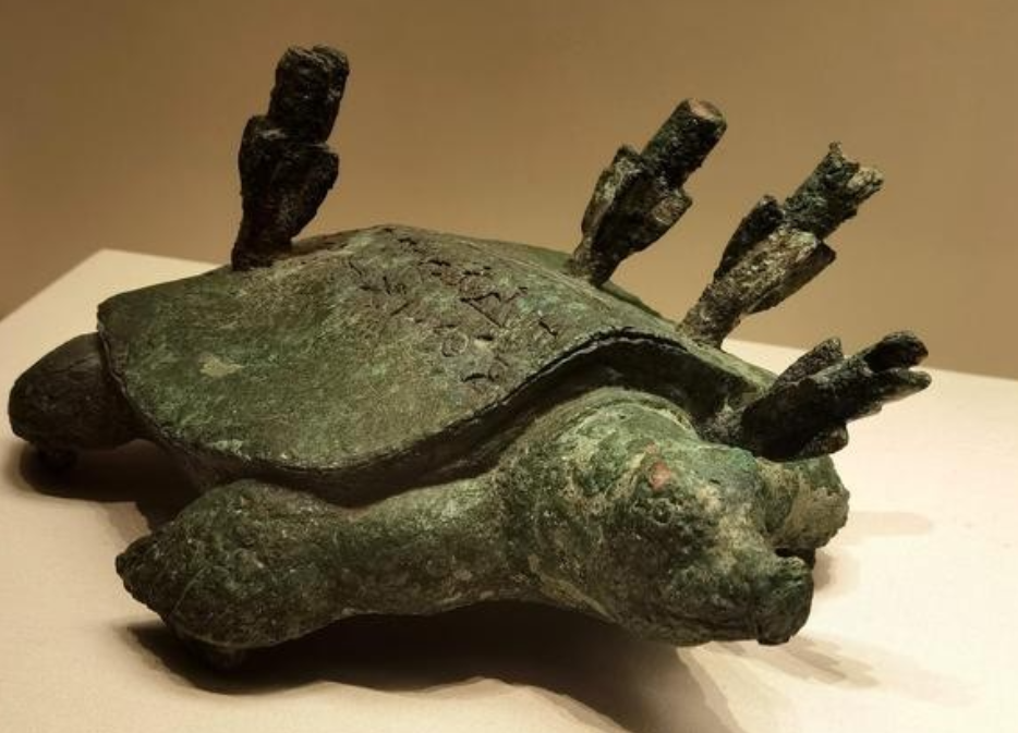 2003 年的某天,河南安阳的一位老农像往常一样在河边钓鱼,在长时间未钓到鱼后,他突然感觉鱼竿有了动静,本以为钓到了大鱼,用力拉起后却发现是一只青铜质地、背插 4 支箭的 “乌龟”。