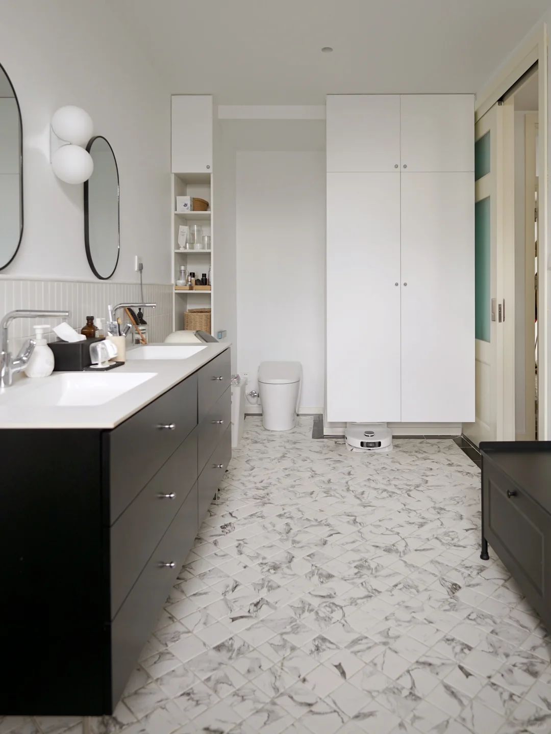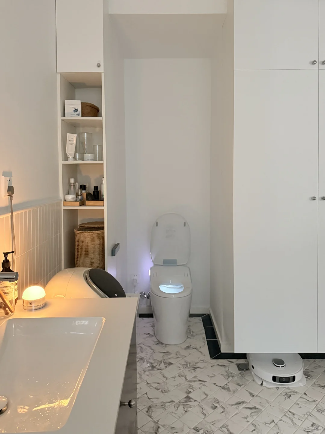对于我们家主卧的浴室,我是带着偏爱的💙 🛁面积11㎡,双台盆的浴室柜也有1.8m长,对三口之家来说,足够舒适,但是用了两年的马桶一直困扰着我👇 ❶即使用刷子🪥,依然感觉喷嘴清洁不到位,作为女性很担心全家健康问题 ❷喷嘴的水只是自来水直接加热,感觉没有干净到可以给孩子冲pp ❸小朋友落座感应识别不到,马桶盖总砸她脑袋 这个月终于给浴室换了新的安华S7全链路除菌智能马桶🚽,最近有品牌活动比平时便宜了1000块,而且还能免费抽恒温花洒🚿,对于带全域除菌功能和微波落座感应的智能马桶来说,非常划算了。 它主打的就是全链路除菌功能👇 💧前置过滤器能有效过滤水中泥沙、红虫、重金属等,保证水质洁净,如果装修时没有做全屋软水净水,这个还挺有必要的 💧活水即用即热,而且臀妇洗所用的水都经过水路紫外线除菌处理,达到适合饮用的标准!说实话自从生育之后抵抗力下降⬇️,我基本只敢用臀洗,现在生理期我也敢用妇洗啦✌️ 💧喷嘴使用过后会自动完成清洁,然后喷枪会进行长达3分钟的紫外线照射,防止交叉感染 💧如厕冲水后10S,马桶会自动喷洒💦电解水,水电解后生成的次氯酸对大肠杆菌、金黄色葡萄球菌杀菌率可达99.9% ,马桶内壁可以长久无菌 💧泡沫盾防溅防臭又抑菌 💧座圈中添加了银离子材料,座圈抗菌率高达99.9% 小朋友和女性的抵抗力比较低,擦pp纸我都选得非常谨慎,安华S7智能马桶的「360°智能洁净系统2.0」实现了每次如厕前后「自消毒」,全方位守护了我和女儿的如厕健康🩵 针对小朋友,它也有几个非常友好的设计👇 ❶微波落座感应 微波感应结合落座感应,全方位识别人体,不受坐姿、落座位置影响,起身擦拭/小朋友如厕乱动都不会引发误冲水 ❷智能识别大厕小厕 不管是站还是坐,大厕还是小厕,马桶都能精准识别,触发对应的冲水模式,完全不会让人操心 ❸智漩泵冲系统 高能增压泵可以360°喷射冲刷马桶,小朋友坐得比较靠前也完全不留污 顺带一提,安华暖冬💰活动时间到12/22就结束了,要换or买马桶的友友真的,赶紧冲!