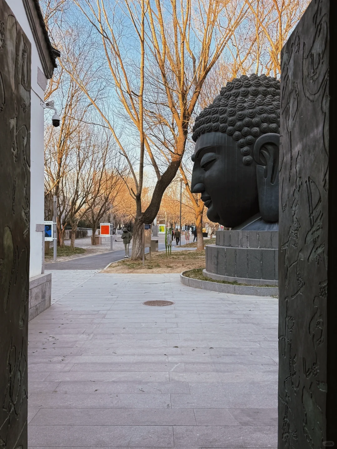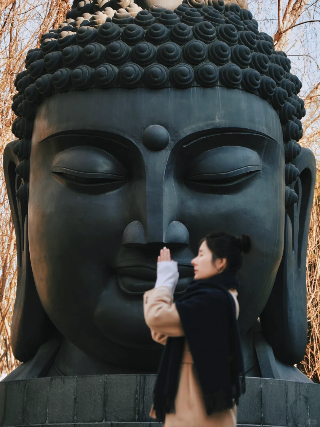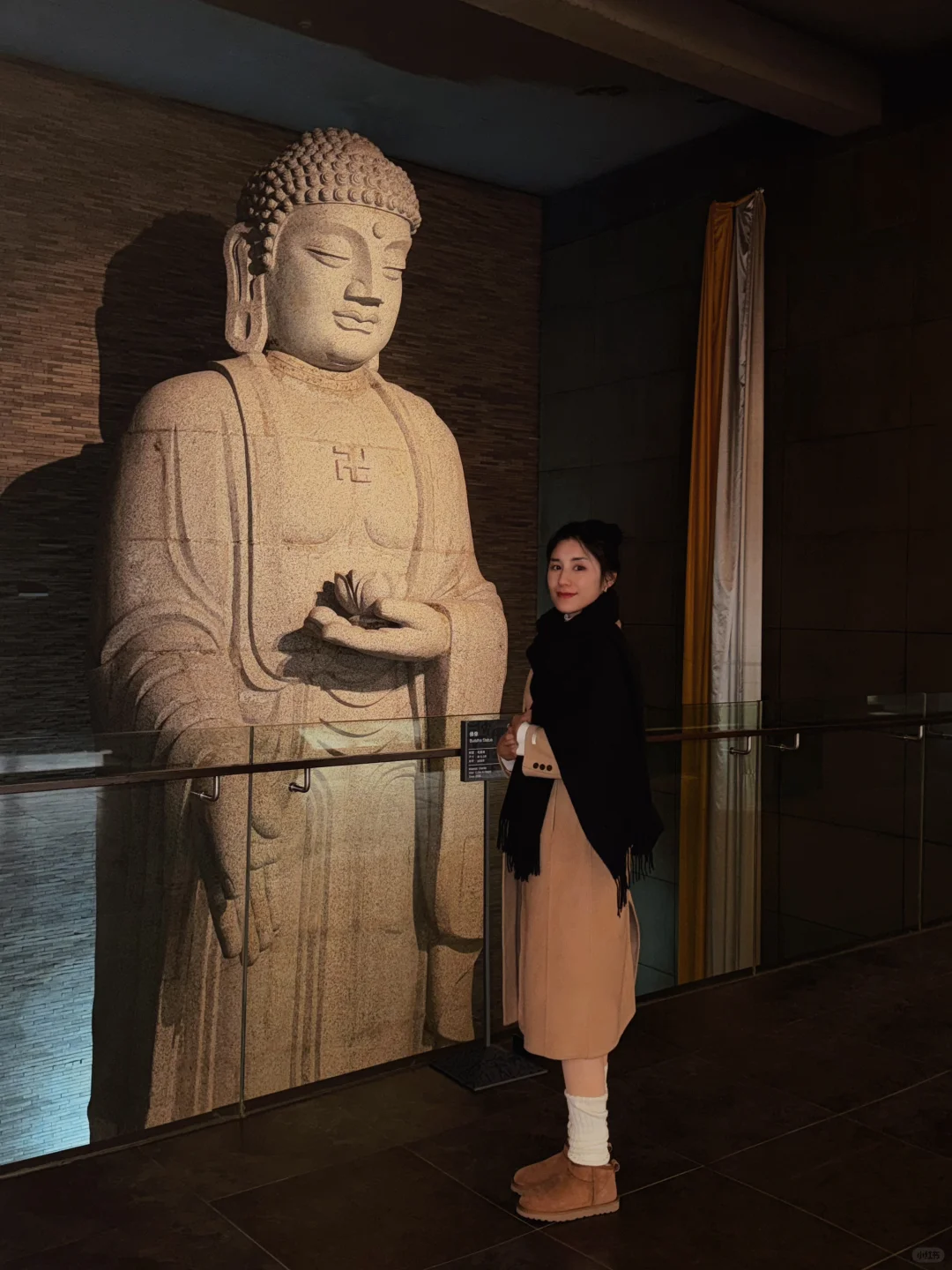 跨越两层楼的佛像,可以在一层仰拍人物和佛像,二层也可以拍