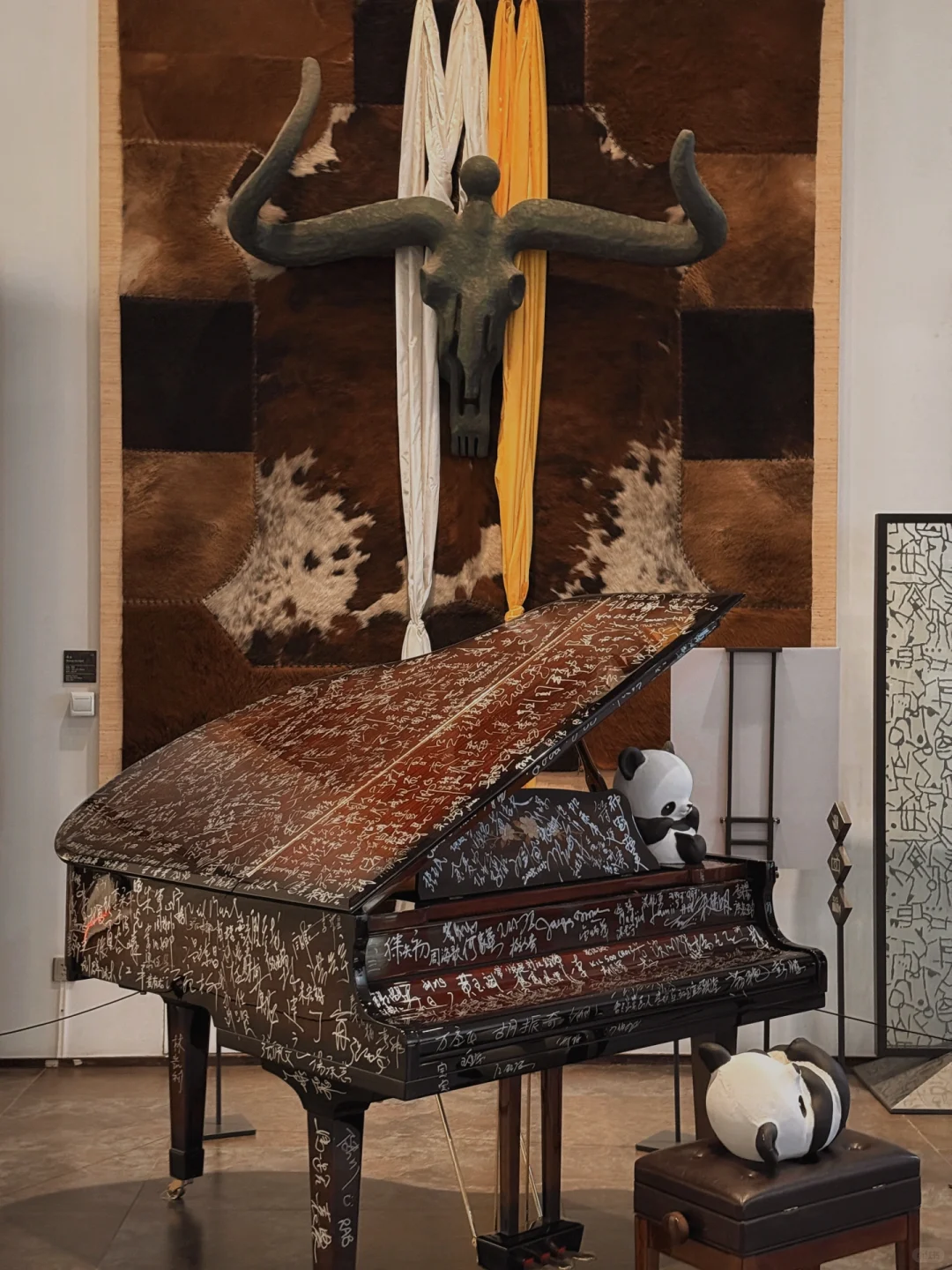 进入北馆第一件展品,一架独一无二的钢琴,上面有着众多艺术家的签名,成龙、姚明、濮存晰等均在此留下签名