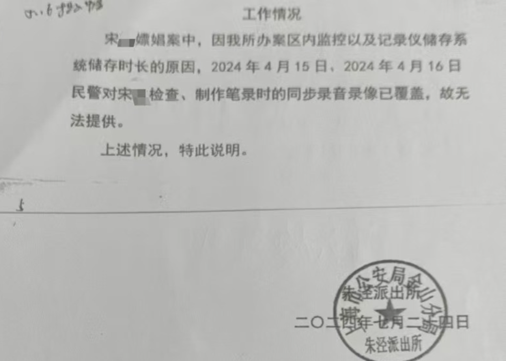 可是警方却表示执法视频已经被覆盖,已无法提供,但宋先生自愿在笔录上签了字,也没证据证明存在诱导行为,所以无法证明没有嫖娼的事实。
