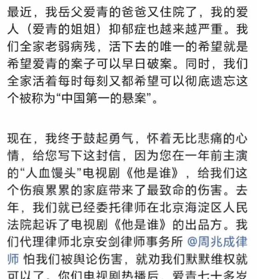 “南大碎尸案”家属指控剧方污名化死者,喊话演员张译:恳请您发声! 找演员还不