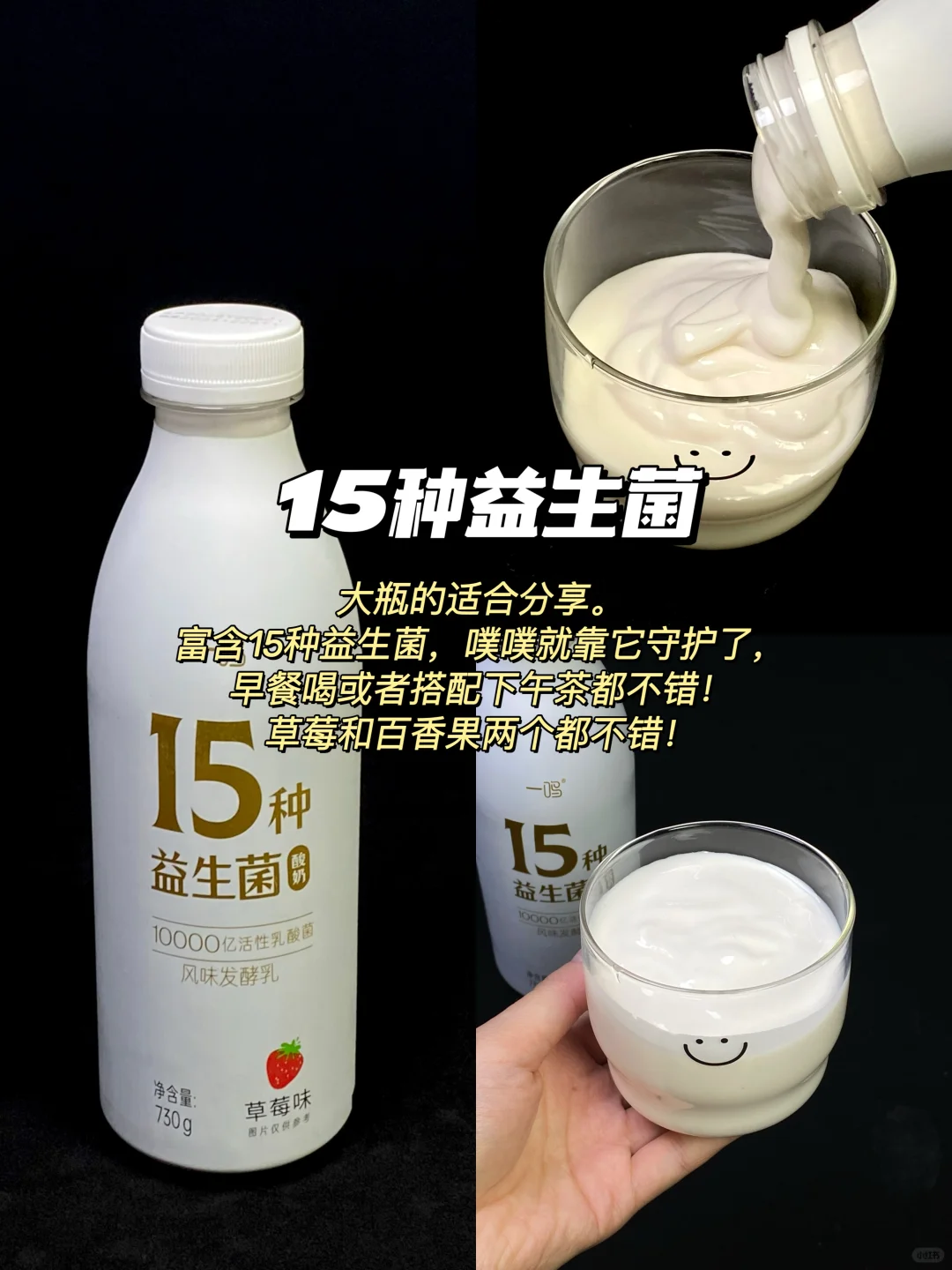 富含15种益生菌,噗噗就靠它守护了,早餐喝或者搭配下午茶都不错!草莓和百香果两个都不错!