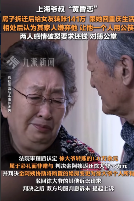 为了表示自己的诚意,徐大爷将超过一半的拆迁款141万元,转给了金大妈。
