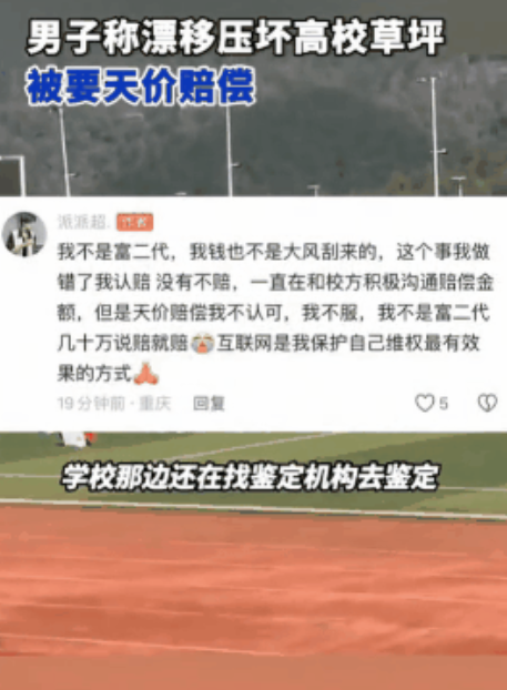 事后,翟帅表示:学校这是要坑钱啊,原本答应好就进行修复,但现在却说学校足球场价值几千万,还说要更换13块草坪,大概有半个足球场那么大,总价值要几十万元。