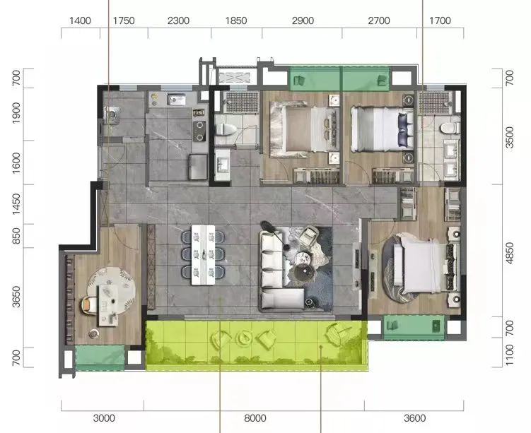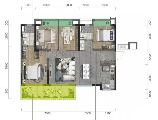 就143㎡的户型来说,约8米的大阳台,带来优越的观景体验;约40平的大面宽客厅,是同类型产品给不了的朗阔的尺度感;而能实现8米的大面宽客厅,产品面积大多在180㎡以上;同时四室的户型布局,不仅满足当下改善家庭的需求,还能给购房者提供多元场景的空间自由感。