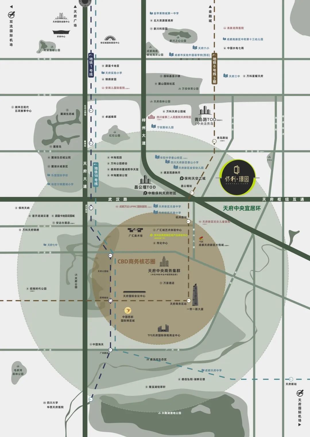 以天府总部商务区核心区为圆心,以适宜步行的约2.5公里为半径的“高品质生活环”,诞生了天府新区中央宜居环,而保利璟园就位于这条黄金环线之上,具备宜居和发展潜能。