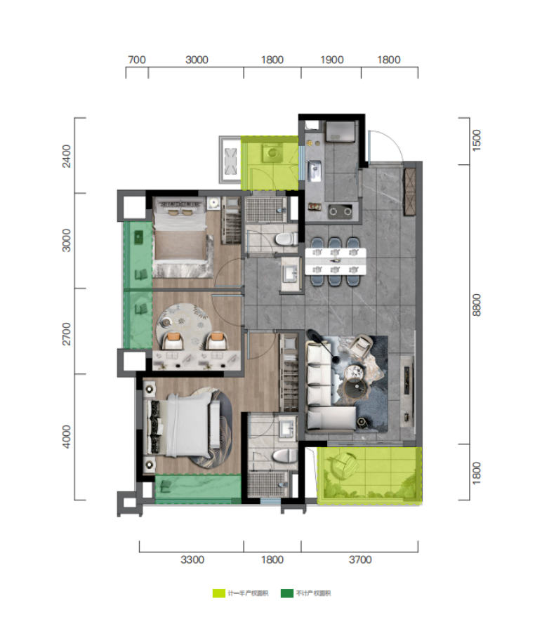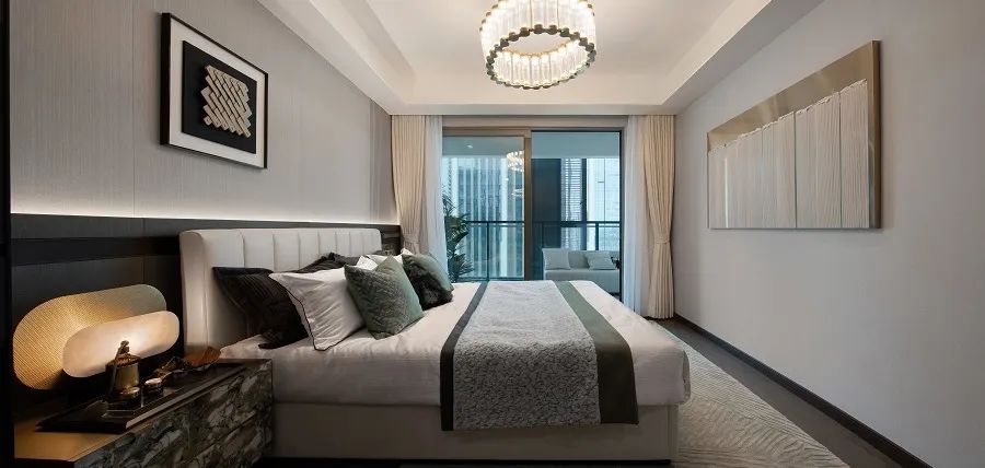还值得一说的是103㎡的套三,不仅呈现出视觉上的开阔气派,还拥有高利用率的竖厅设计;多功能双阳台,一边安放烟火生活,一边揽尽园林美景。轻奢主卧套房,私享独立卫浴,尽显品质生活。