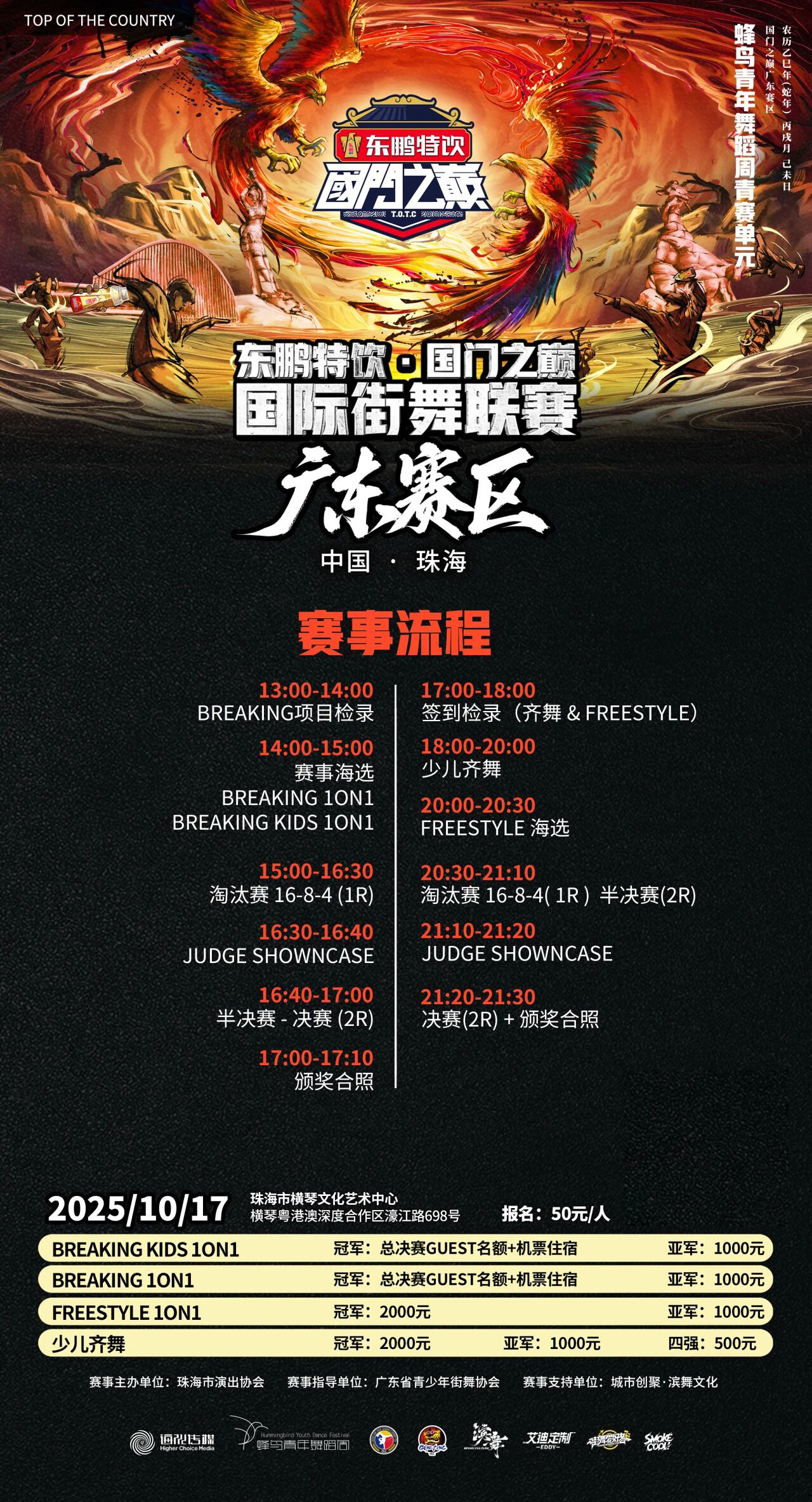 天沐琴台的韵律沉入Breaking的节拍,五羊衔穗的传说在齐舞阵型中绽放,珠海渔女掌心的明珠映照着舞者额角的汗与光。10月17日,当“国门之巅”的声浪漫过珠海摄影文化艺术中心,岭南大地的街舞图景,即将写下全新一章。
