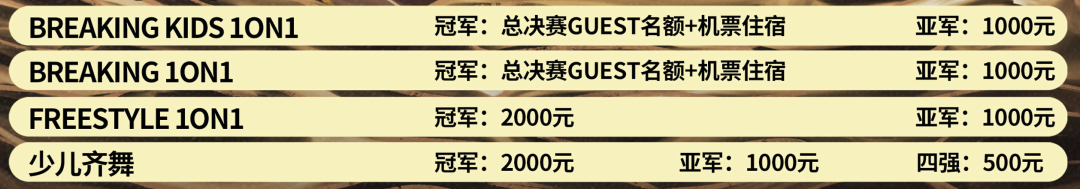 BREAKING KIDS 1ON1冠军:总决赛GUEST名额+机票住宿亚军:¥1000元