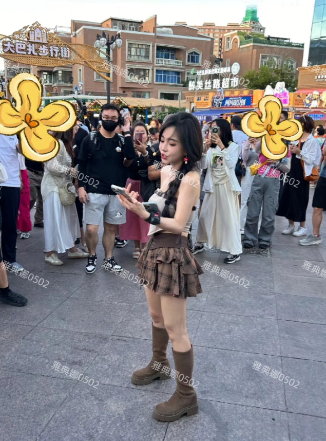 冯提莫真不容易,为了增高太拼了,顶着30多度的高温穿长靴。 衣服很清凉但不管服装如何变幻,这双内增高10厘米假肢一样的战靴就像焊在脚上一样。 没办法脱下靴子的她,连1米5也没有,小小一只在人群里很难看到她。
