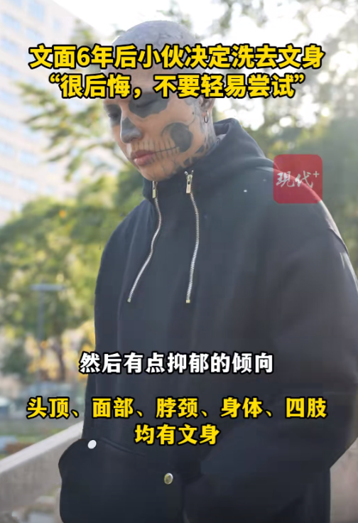 (信息来源:广西旅游广播2024年12月22日关于《2024年12月18日,小伙从外地来到江苏常州,清晰脸上的纹身,因为叛逆和年少时的抑郁症状,在整张脸上纹了图案》的报道)