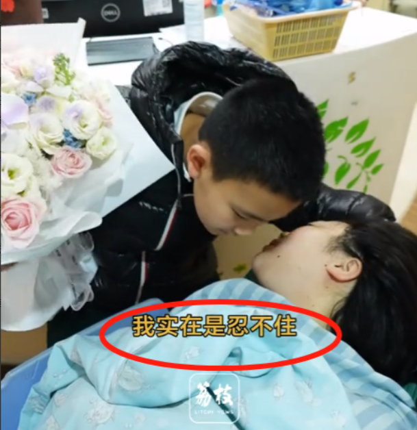 尽管家人劝他去休息一会儿,但他却坚定地守在产房门外,一步也不肯离开。幸运的是,手术进行得非常顺利,母女俩都平安无事。医生告知家属这个好消息后,男孩更是激动不已。他手捧着鲜花,硬是在门外站了整整30分钟,只为了能在第一时间看到妈妈,把鲜花送给她。