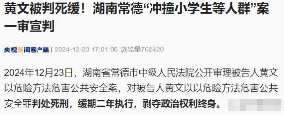 12月23日,湖南省常德市中级人民法院对备受关注的“男子驾车恶意冲撞小学生及人群”案进行了一审宣判,判处被告人黄文死刑,缓期二年执行,并剥夺政治权利终身。