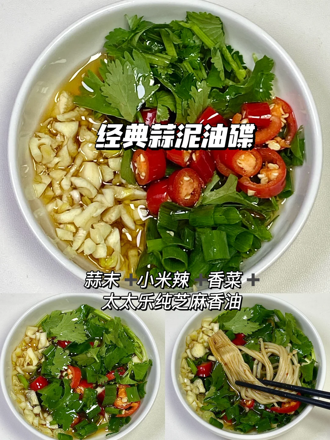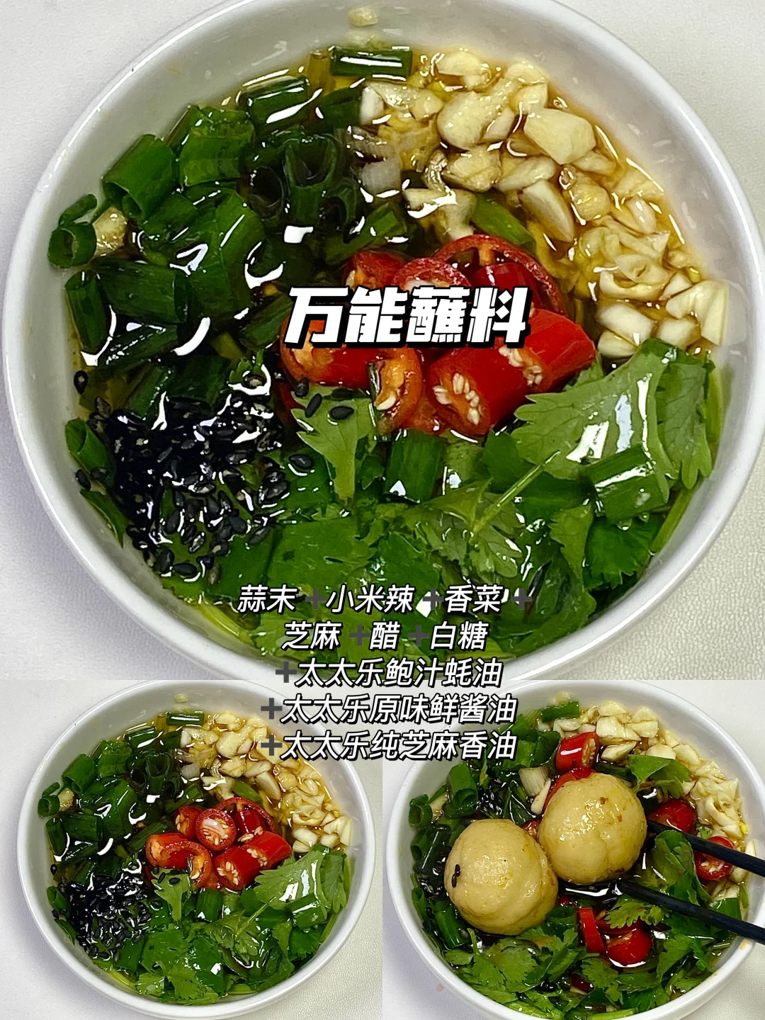 蒜末 ➕小米辣香菜➕葱花➕香油➕蚝油 ➕醋 ➕少许白糖