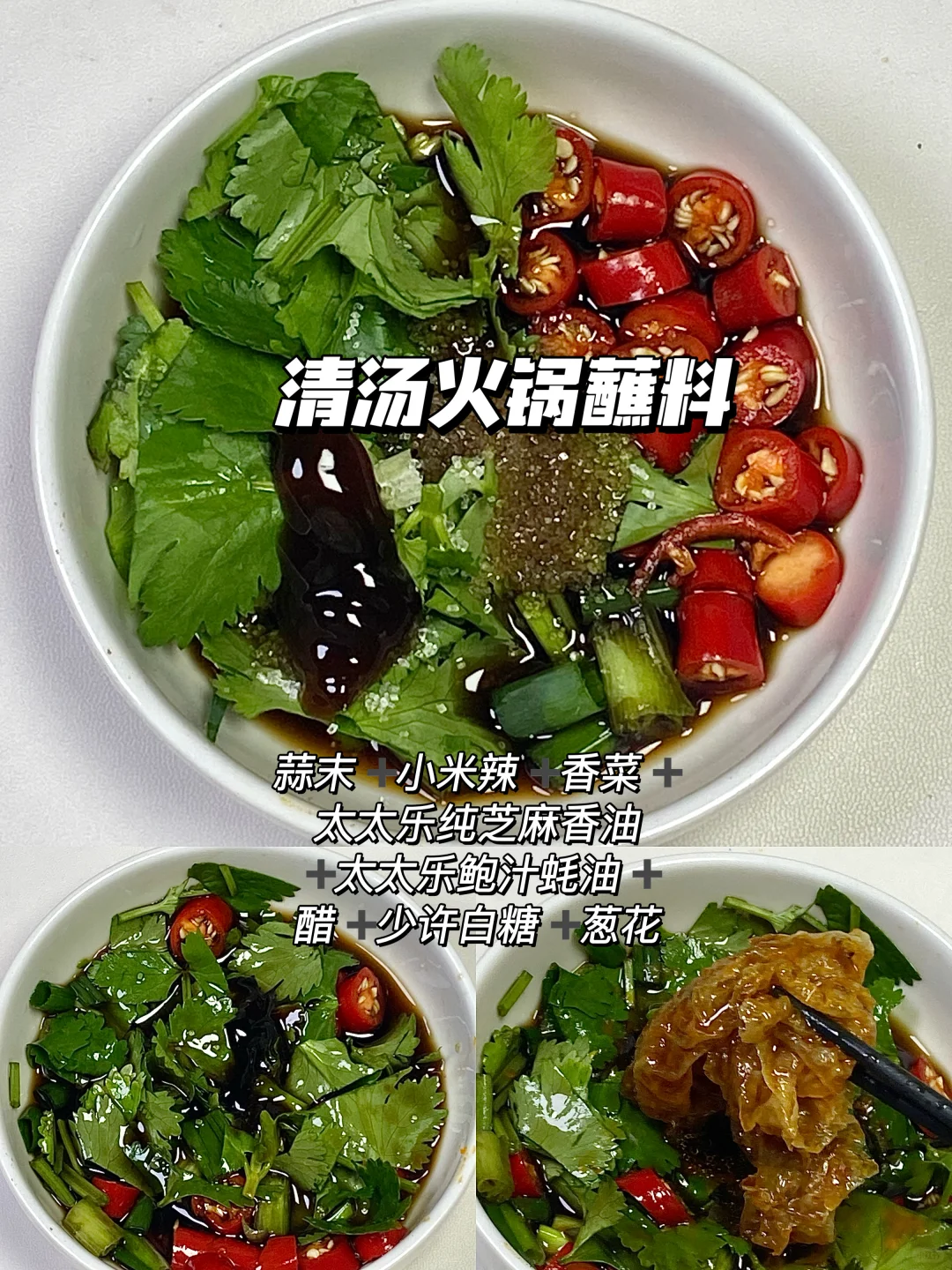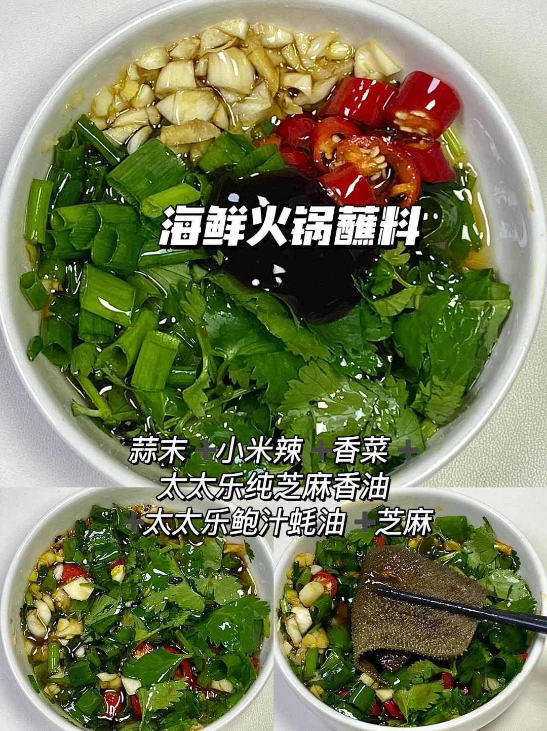 不知道选什么调料直接按这个来,秘诀就是我的独家太太乐火锅蘸料三件套香迷糊公式: