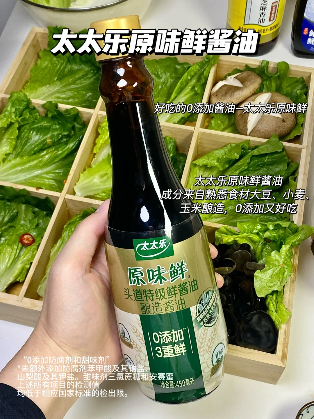 这个蘸料也巨巨好吃!蘸肉,嘎嘎香!吃火锅肉的品质好坏很重要,搭配的酱油也是!像好吃的0添加酱油-太太乐原味鲜,成分都来自熟悉食材而且还是0添加,吃起来很安心~蘸上大片肉真的很鲜!