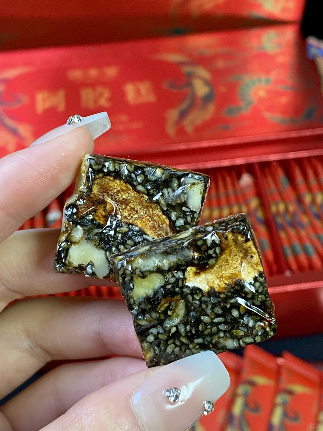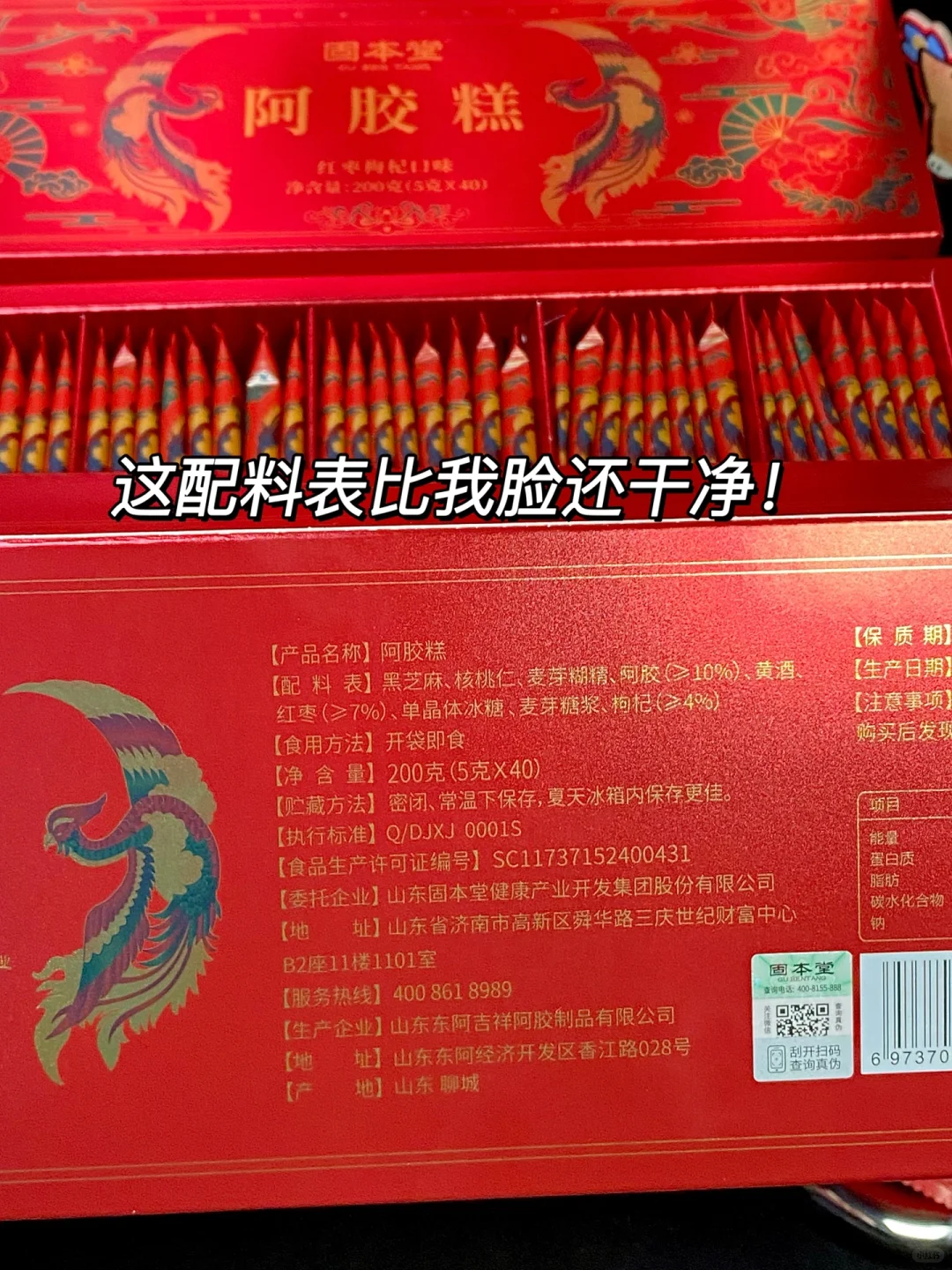给长辈挑礼物可太难了!!得让他们打心眼里喜欢 还得实用不会被说浪费钱 - 在一堆礼品里扒拉来扒拉去 好不容易才让我瞅见了一个满意的 山东老字号品牌的固本堂阿胶糕! - 配料表蛮干净的 添加了正宗的阿胶、黑芝麻、核桃仁、红枣 这些对身体有益的食材 而且能吃到大块的原料! 没有乱七八糟的其他添加剂 - 吃起来口感也是软软糯糯的,没有怪味也不甜腻! 充满了我妈会喜欢的那种健康味道! 即便是当零食吃,那味道也不在话下[喝奶茶R] - 每一块都是独立的小包装 出门随手带一块炒鸡方便 买一送一,性价比也hin高! 200块的预算就能轻松拿下 一下子解决2家送礼难题![赞R]