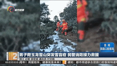 近日,一名游客爬玉龙雪山时,在雪莲峰附近突发雪盲症,导致迷路被困,接到报警后,当地消防和警方立即展开营救。