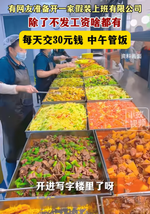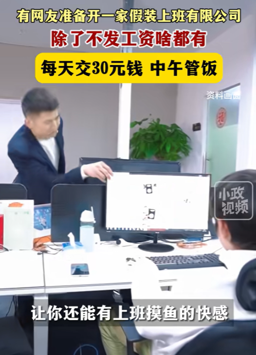 (来源:小政视频2024年12月28日关于《有网友准备开一家假装上班也有限公司,除了不发工资啥都有,每天交30元钱,中午管饭》的报道)