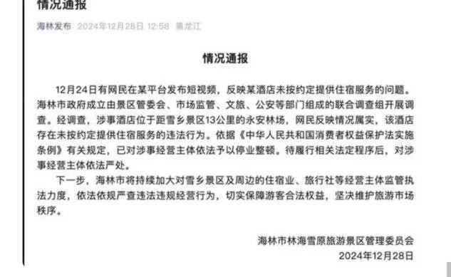 (信息来源:极目新闻 2024年12月29日 《游客花三千元订房,入住时被要求加钱,吃相难看令人心寒》)